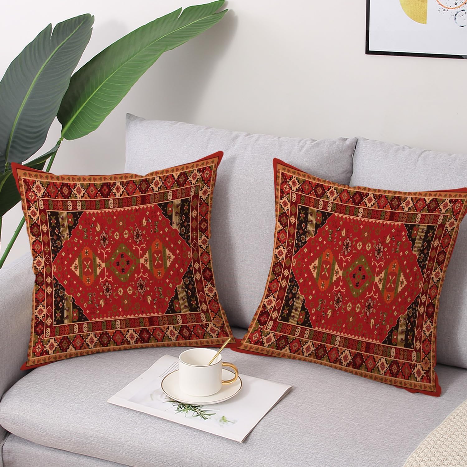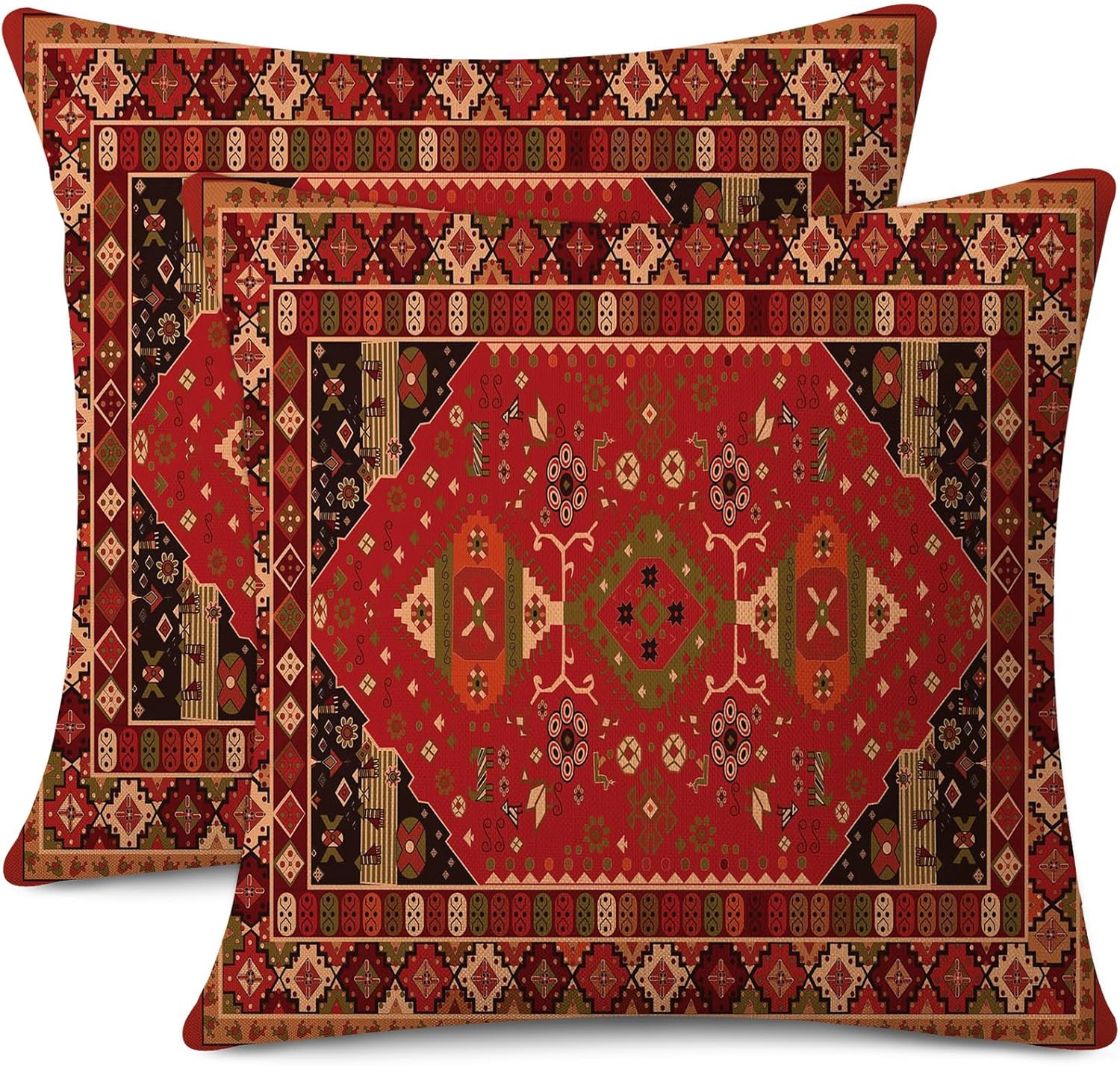 Outdoor Waterproof Pillow Covers 18X18 Inch Set of 2 Bohemian Vintage Carpet Pattern Pillow Covers Ethnic Design Decorative Farmhouse Cushion Case for Couch Red