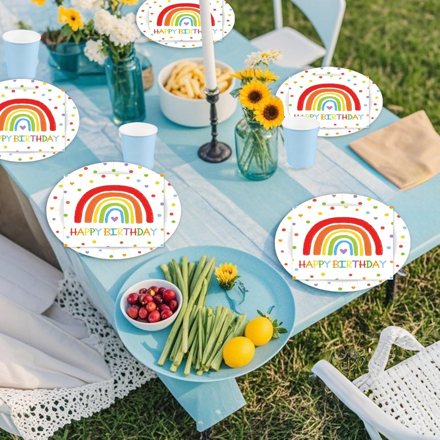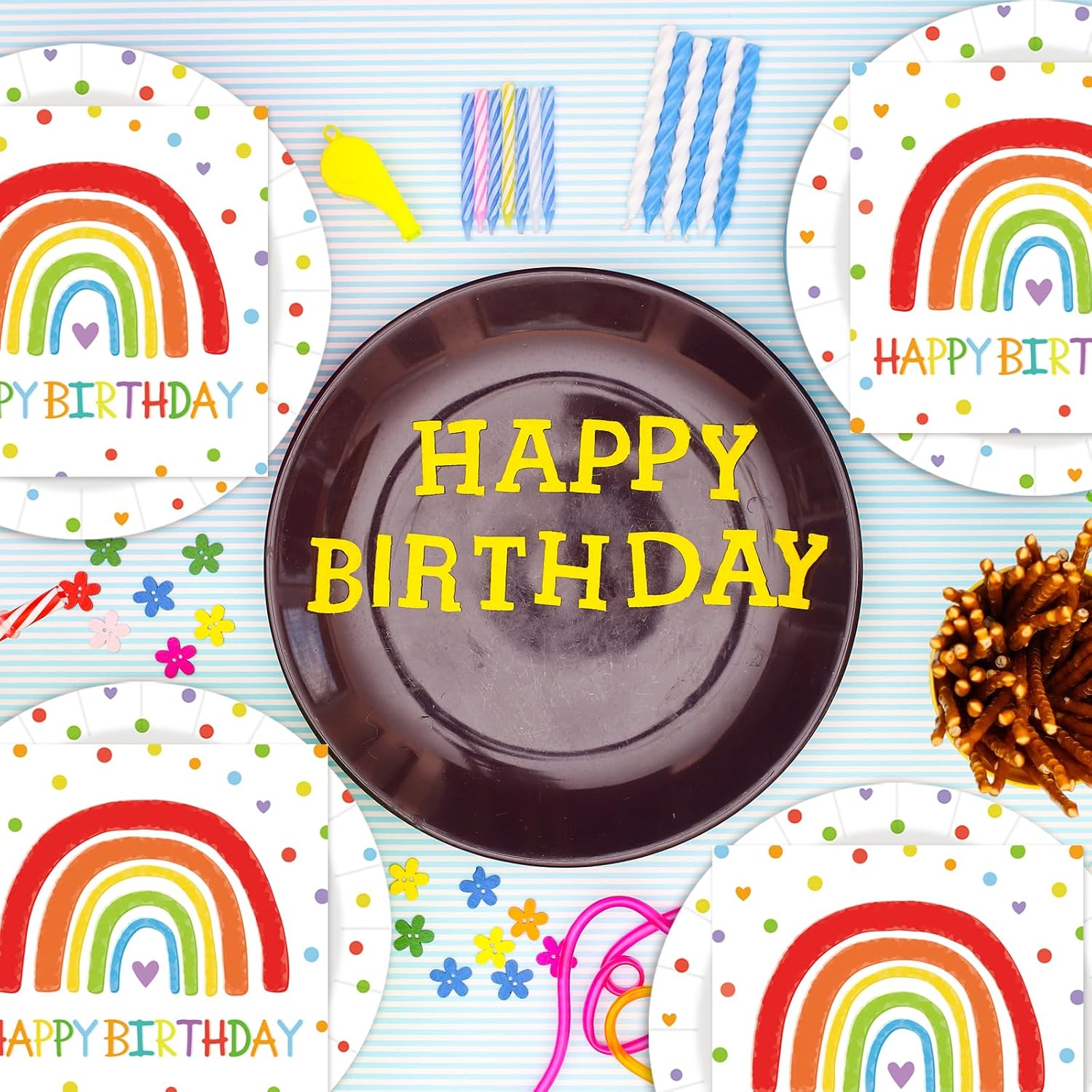 - Rainbow Birthday Cake Party Perfection:20 vibrant 9-inch paper plates & 20 matching napkins bursting with cake designs and colorful balloons, creating a visually cohesive birthday cake paper plates and napkins experience.