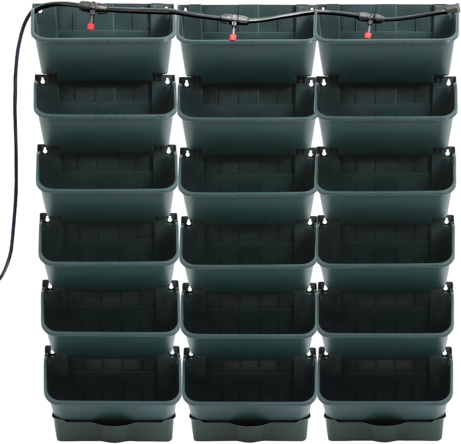 18 Pots Self-Watering Wall-Mounted Planter, 39.4”L x 39.4”H Vertical Wall Planter Self Watering Stackable Planters Vertical Garden Wall Garden Planter Outdoor Indoor for Herbs Flowers Strawberries