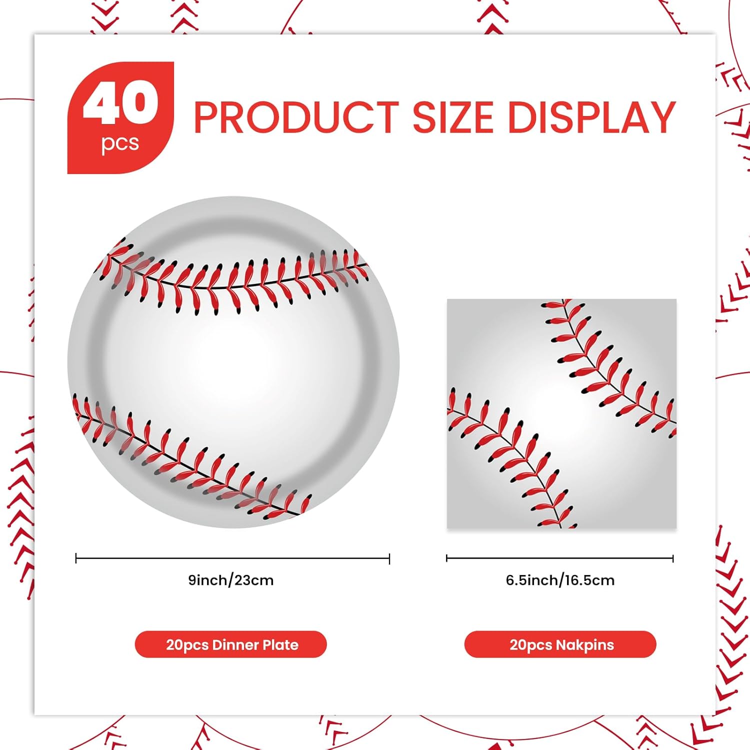 40 Pcs Baseball Party Dessert Plates and Napkins Sets 9" Paper Plates and 6.5" Napkins Party Supplies Tableware Decoration For Birthday Picnic