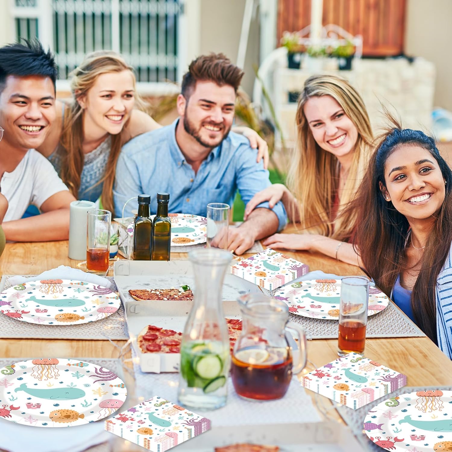 - Instant Party Atmosphere:Create cohesive ocean decor effortlesslyâthese party paper plates and napkins coordinate with tablecloths, cups, and birthday party banners.