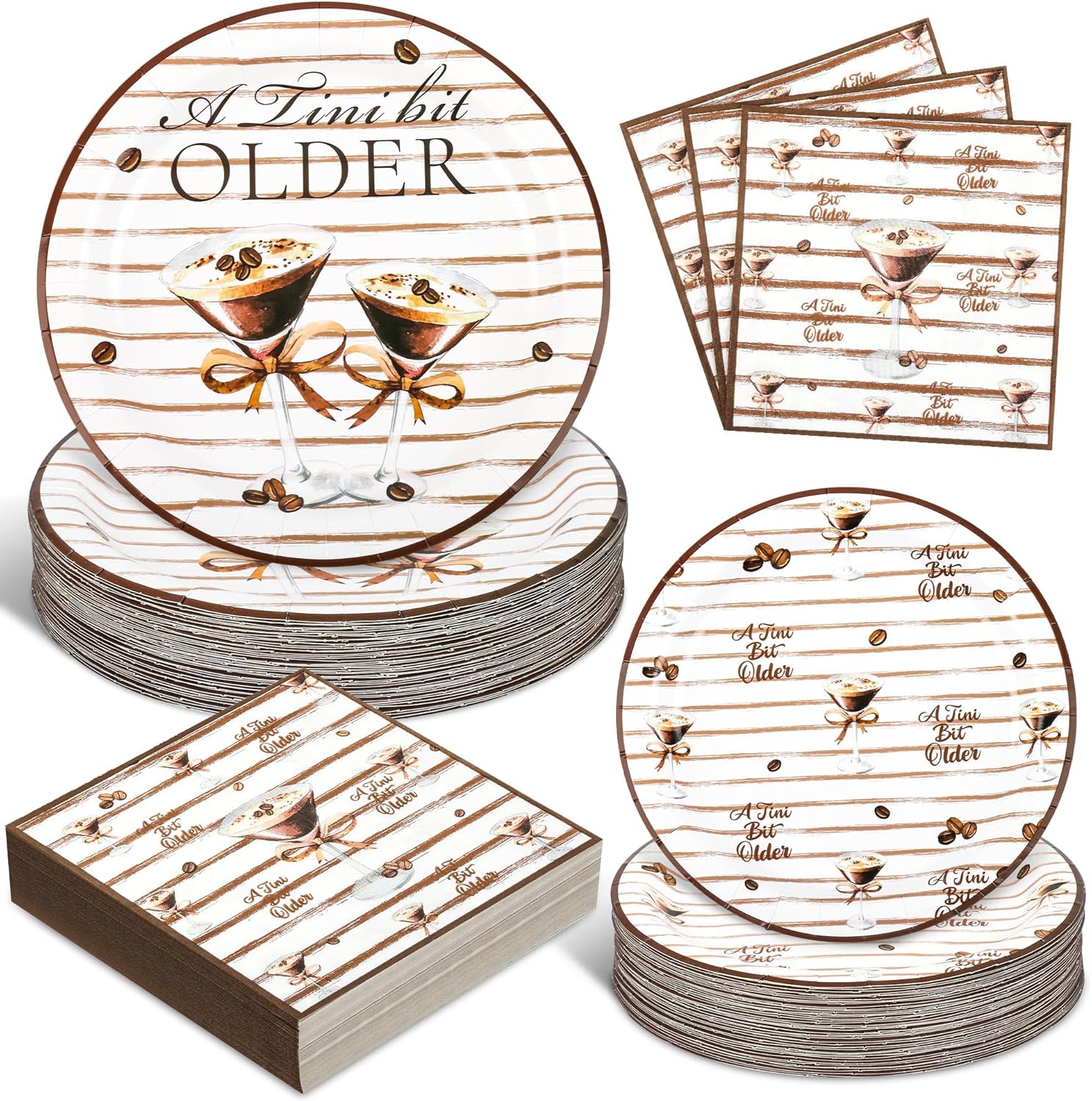 - UNIQUE DESIGN---Stand out with our one-of-a-kind martini bow party plates supplies and a tini bit older plates and napkins, designed to match both classic and modern party themes. Expresso martini party decorations blend effortlessly with any decor, adding an extra layer of sophistication. Whether you're setting up a martini bar or celebrating a special moment, our a tini bit older plates, martini themed paper plates, and martini plates and napkins offer a stylish and unique touch that your guests will love.