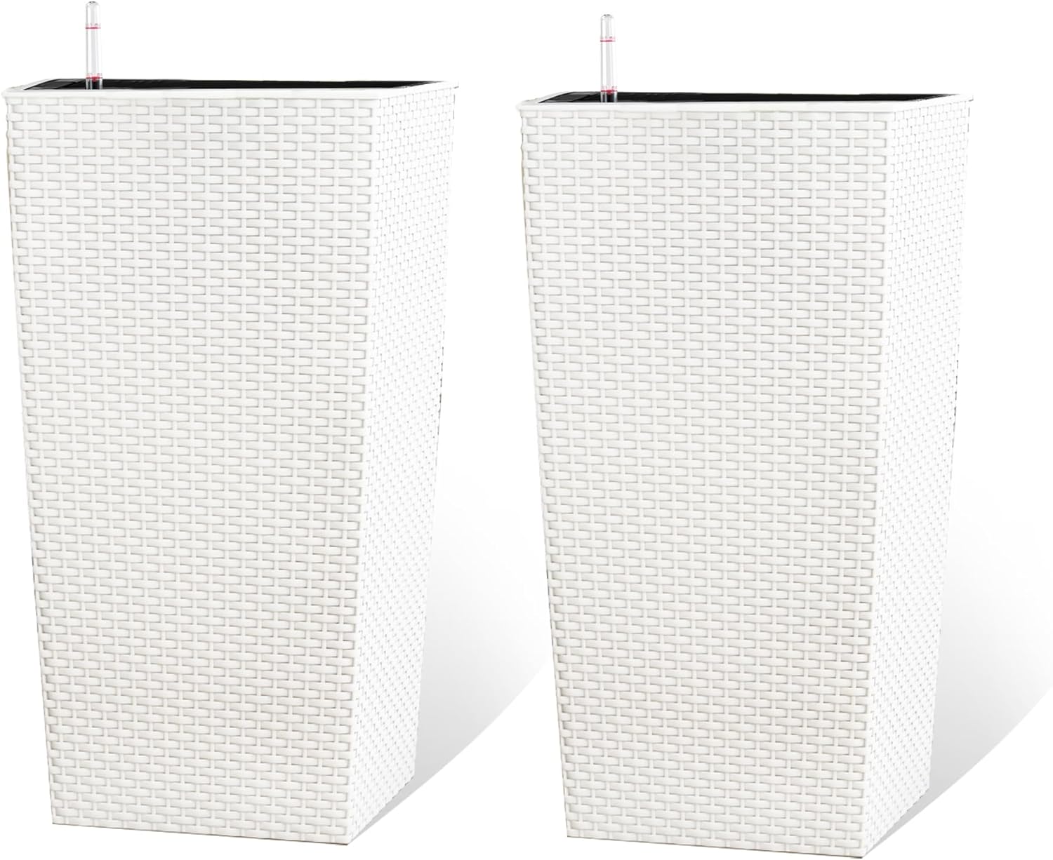 2Pcs 23in High Large Plant Pots Planter-Self-Watering,Modern Planter with Drain Holes,Water Level Monitor,Inner Bucket for Indoor/Outdoor Front Porch Patio,White Rattan
