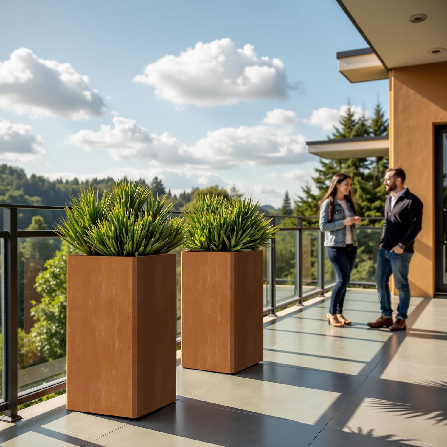 - Modern planter decor: This tall square planter is suitable for indoor/outdoor. Porch/balcony/garden/patio/office, this sturdy and durable metal planter is a perfect match. Simple design, with full of life greenery, it is a landscape wherever you put it