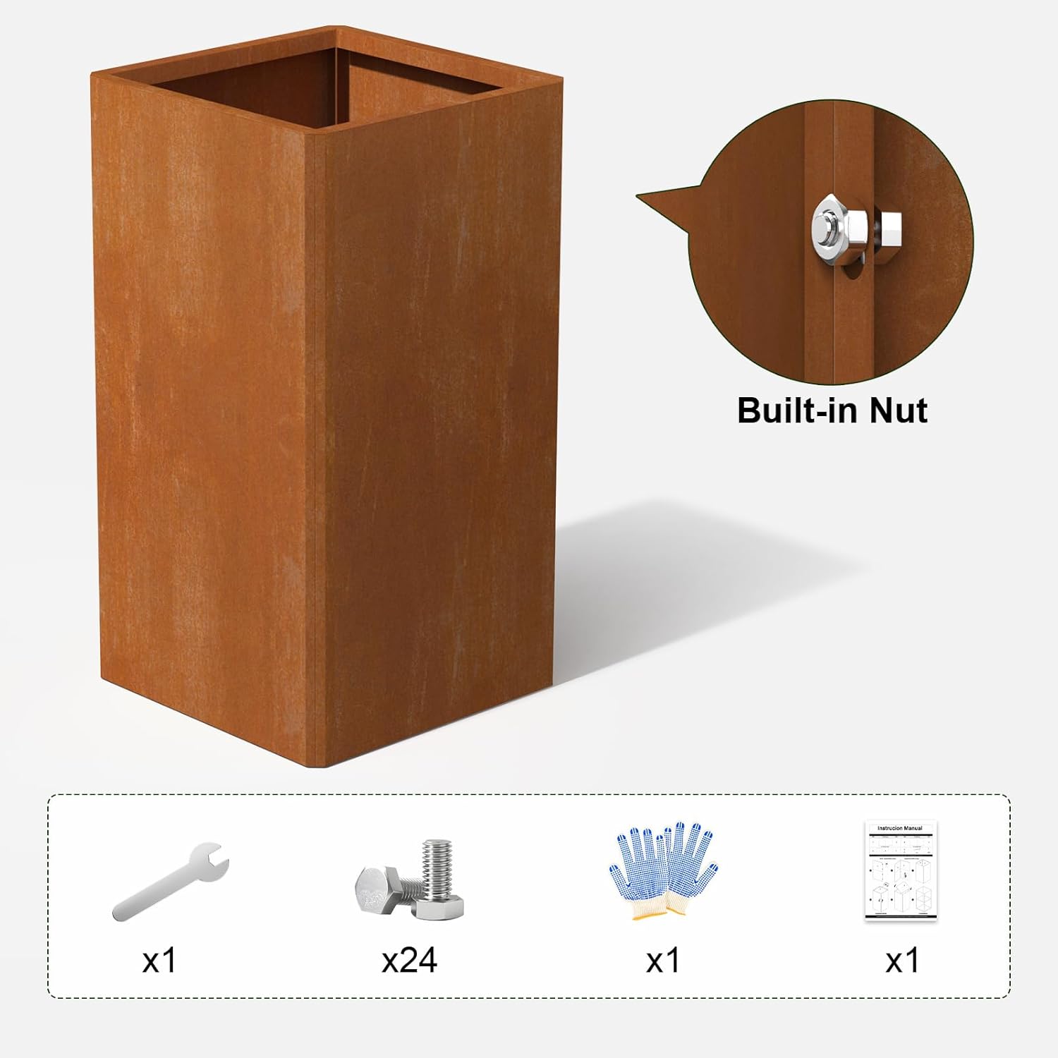 - đ§° Effortless Tall Square Planter Assembly: Full kit (24 screws/wrench/gloves/manual) + 45° angle splicing. Wrapped edges prevent cuts during setupâDIY-friendly heavy-duty build for elevated designs!