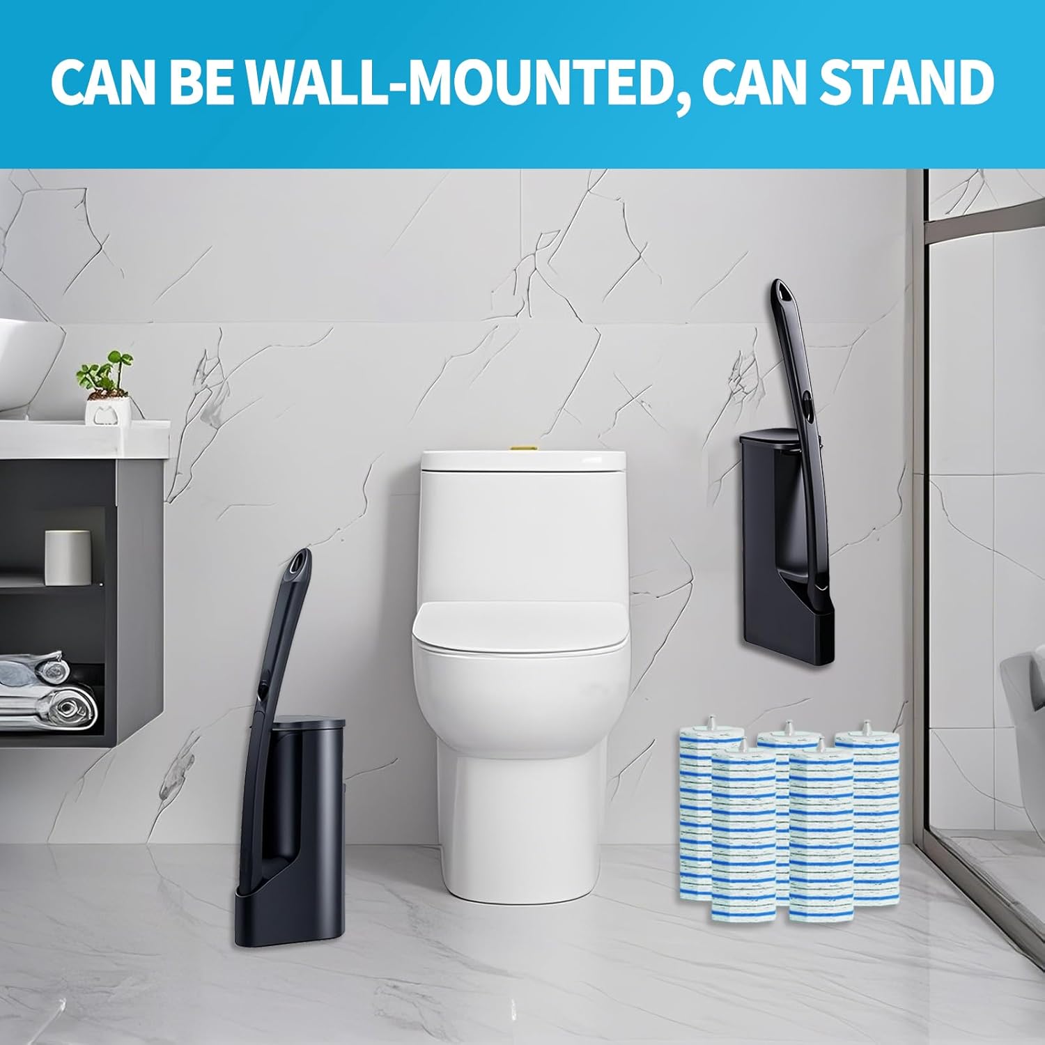 Disposable Toilet Brush with 50 Wand Cleaner Refills Pads,Wall Mounted Toilet Bowl Holder Set,Toilet Cleaning System Starter Kit,Bathroom Cleaning System for Sink Bathtub Wash Basin