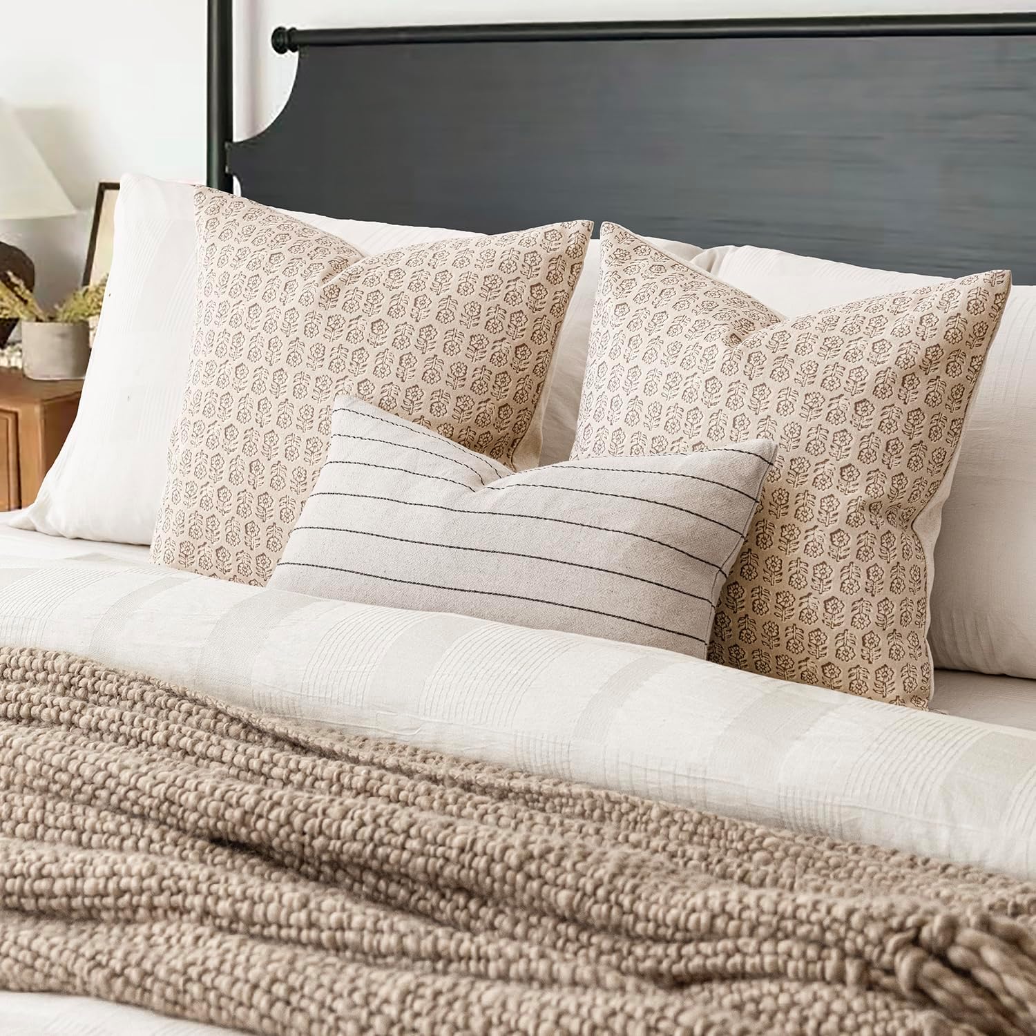Foindtower Set of 2 Decorative Neutral Floral Print Throw Pillow Covers Vintage Accent Farmhouse Cushion Covers Boho Home Decor for Sofa Couch Chair Bedroom Living Room Outdoor,24×24 Inch,Ivory Beige
