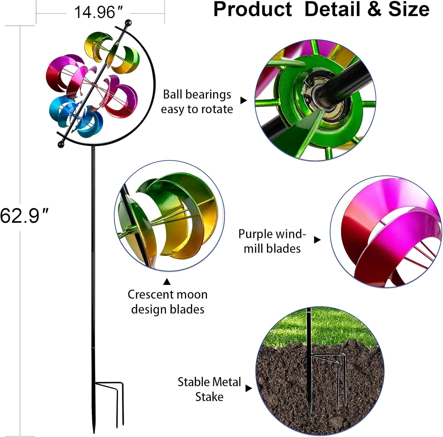 - Built to Endure Harsh Weather: Crafted with heavy-duty metal and sealed bearings, the spinner’s rust-resistant blades rotate smoothly even in rain, snow, or strong winds. Durable powder-coated finish ensures vibrant colors last for years.