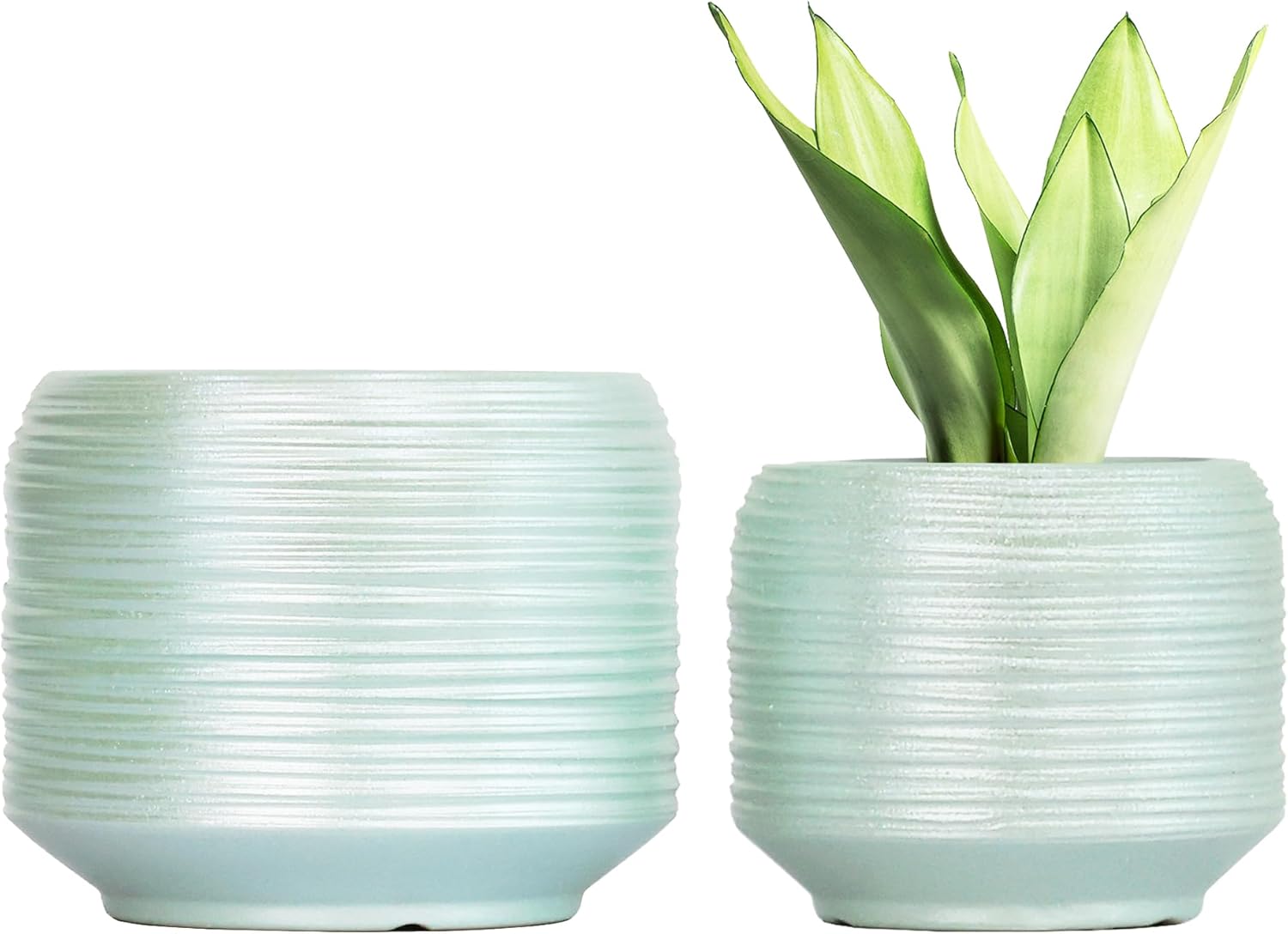 - 【Two Sizes for Versatile Planting】:Includes one 8 inch and one 6 inch ceramic pot with drainage holes. These potting containers for plants are ideal for medium house plants, herbs, or indoor garden displays.