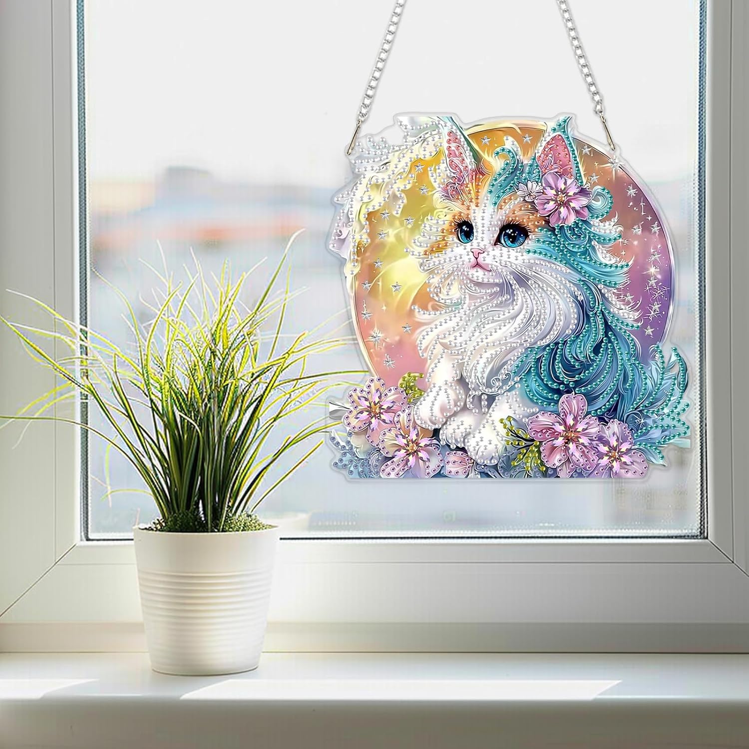 SENQAO Cat Diamond Art Hanging Kit for Adult, Special Shaped Rhinestone, Double Sided DIY Acrylic Diamond Art Painting Window Pendants Home Garden Wall Hanging Kits Hanging Ornament