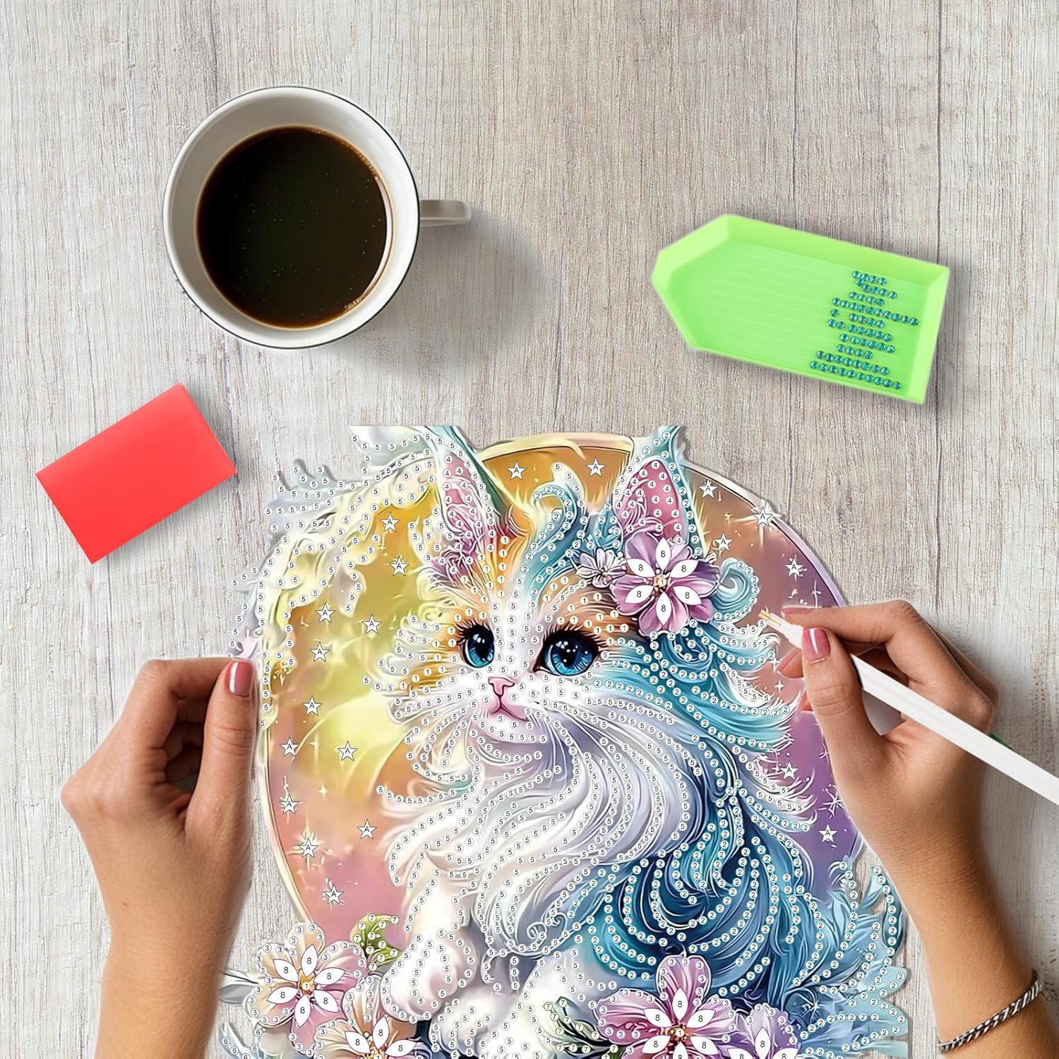 - Diamond Painting Kit Include: Package comes with enough colorful diamonds, diamond hanging plate x1, iron chain x1, point diamond pen x1, cube x1, diamond tray x1, red glue clay x , with beautifully crafted boxes, providing everything needed for art completion