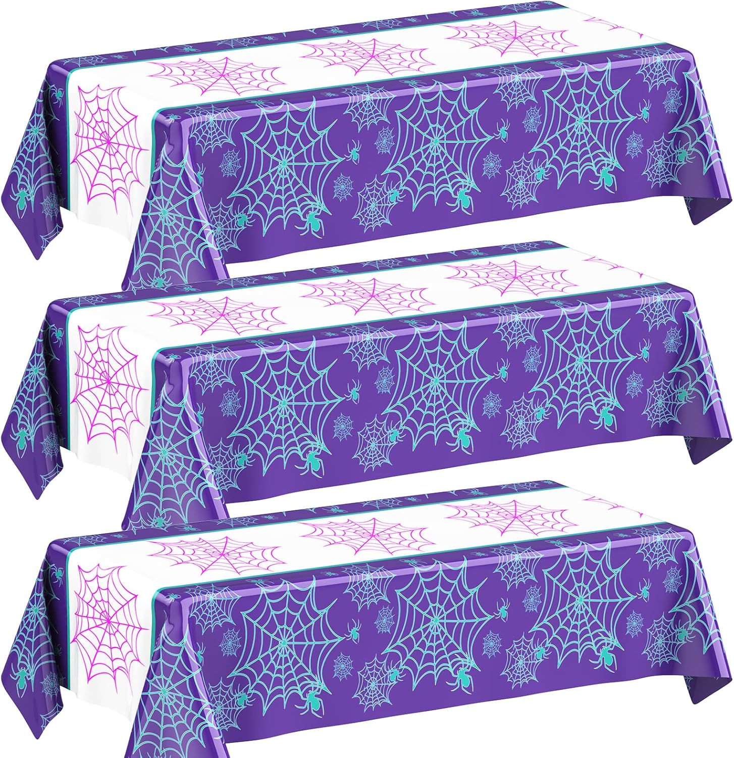 Oudain 3 Pack Spider Theme Birthday Decorations Halloween Purple Black Red Pink Green Web Ghost Bat Tablecloth Cartoon Table Cover Party Favor for Birthday (Purple,Spider)