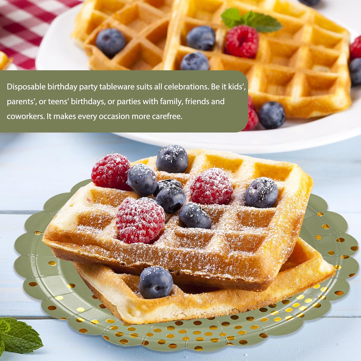 - 【SAVE TIME & CONVENIENT】: All sage green dessert plates are disposable and recyclable. It can be thrown away when you are done using them, and they are easy to clean up after the party, so you don't have to worry about cleanup or environmental issues! Give you and your guests more time to enjoy the party!