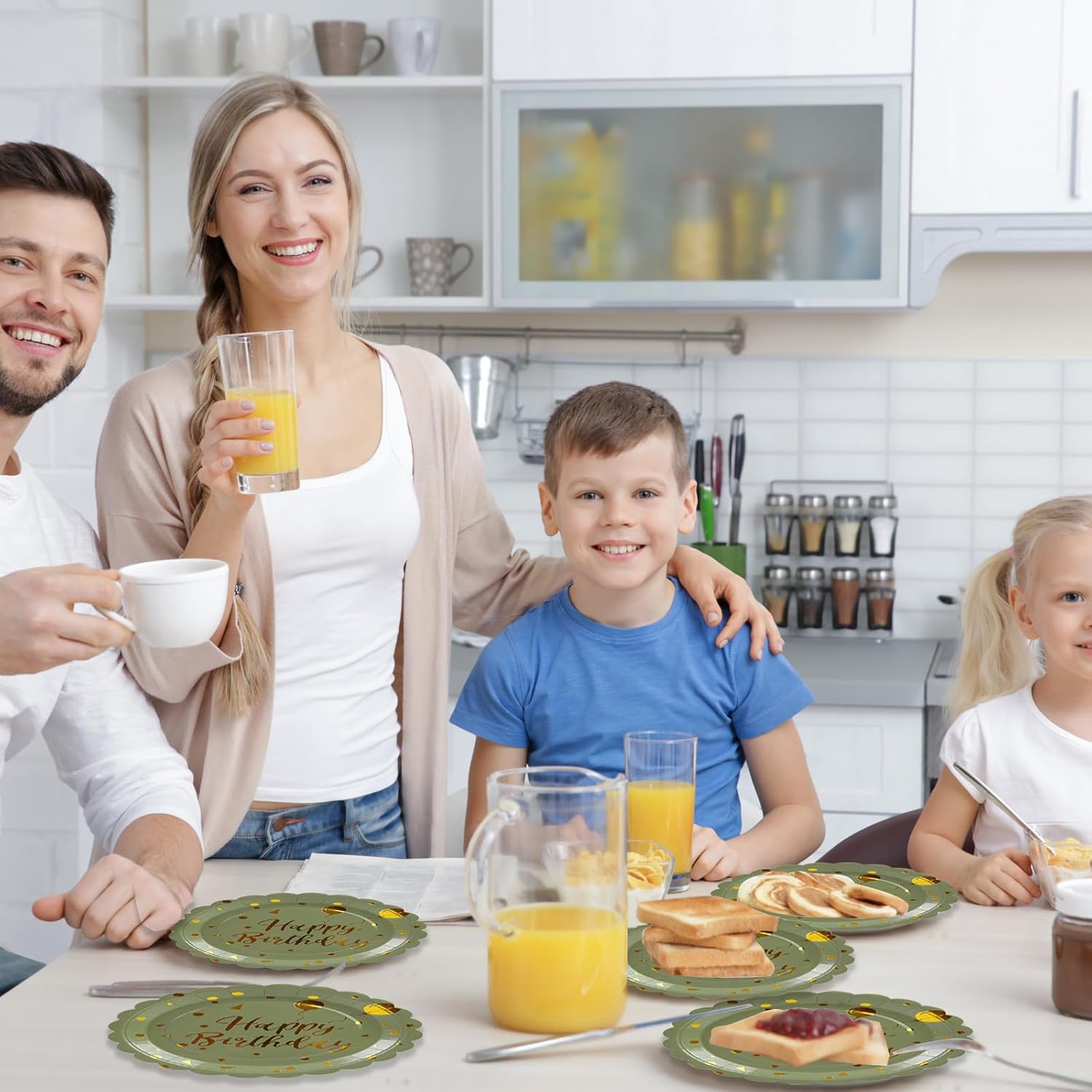 - 【EXQUISITE DESIGN】:Eye-catching gold foil stamping of 'Happy Birthday' in stylish fonts adorns these green dessert plates and the rising balloon signifies growing goodness. It adds a touch of elegance and festivity, making your birthday party table instantly stand out.