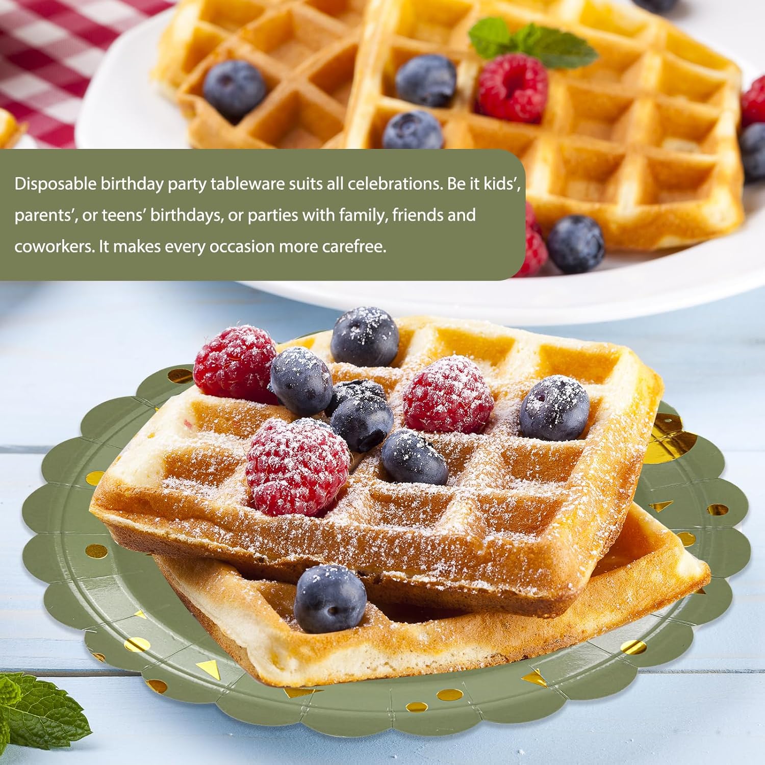 - 【BIRTHDAY PARTY SUPPLIES】: Sage green birthday party plates set comes with 50pcs sage green paper plates, serve up to 50 guests, specifically for dessert plates size: 18cm/7inch, small but definitely sturdy enough to serve dessert, cake, appetizers and other party foods, gold foil paper plates are exquisite and generous, it's a must-have finishing touch to your birthday dinner!