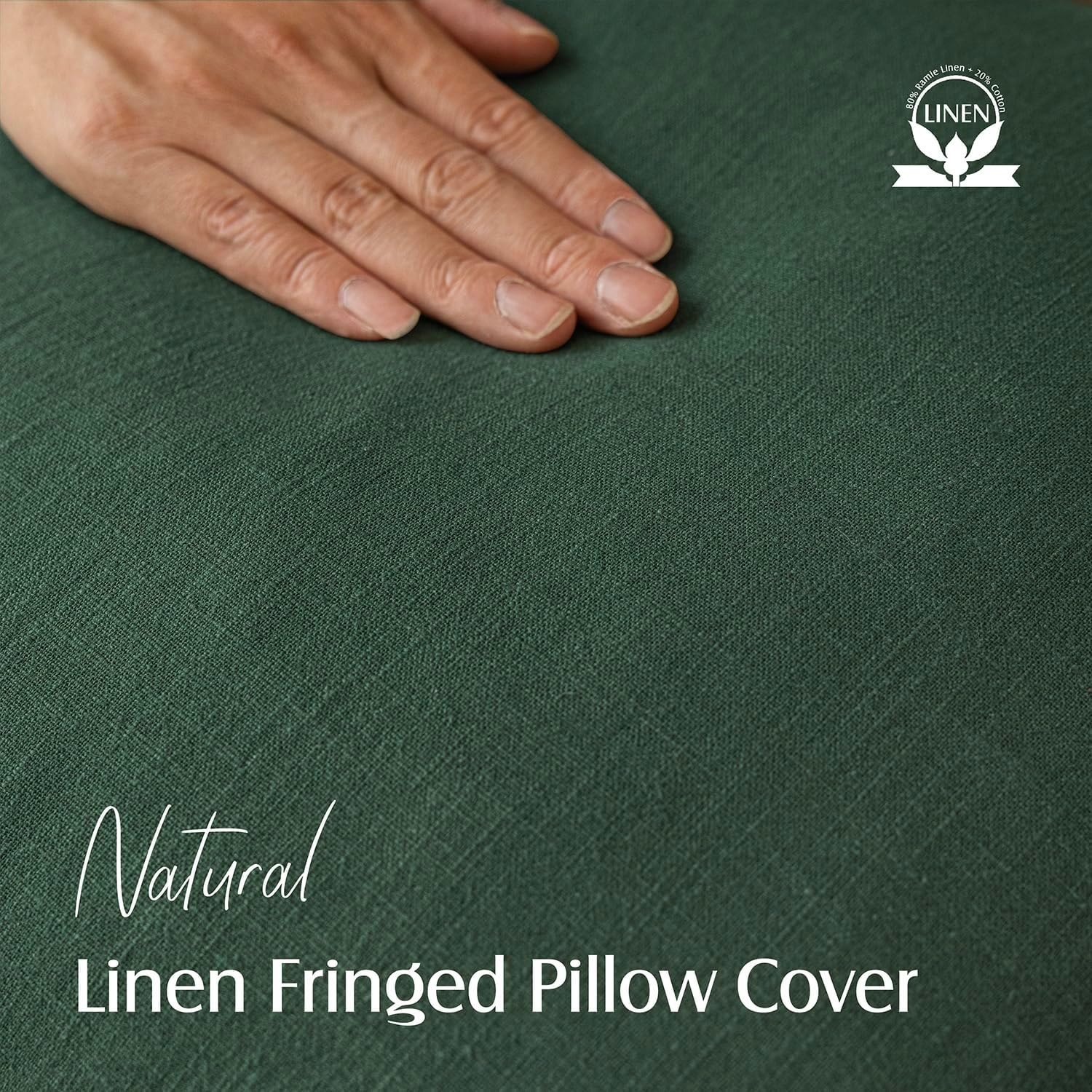 Foindtower Set of 2 Decorative Linen Fringe Throw Pillow Covers Cozy Boho Farmhouse Cushion Cover with Tassels Soft Accent Pillowcase for Couch Sofa Bed Living Room Home Decor, 16×16 Inch, Pine Green