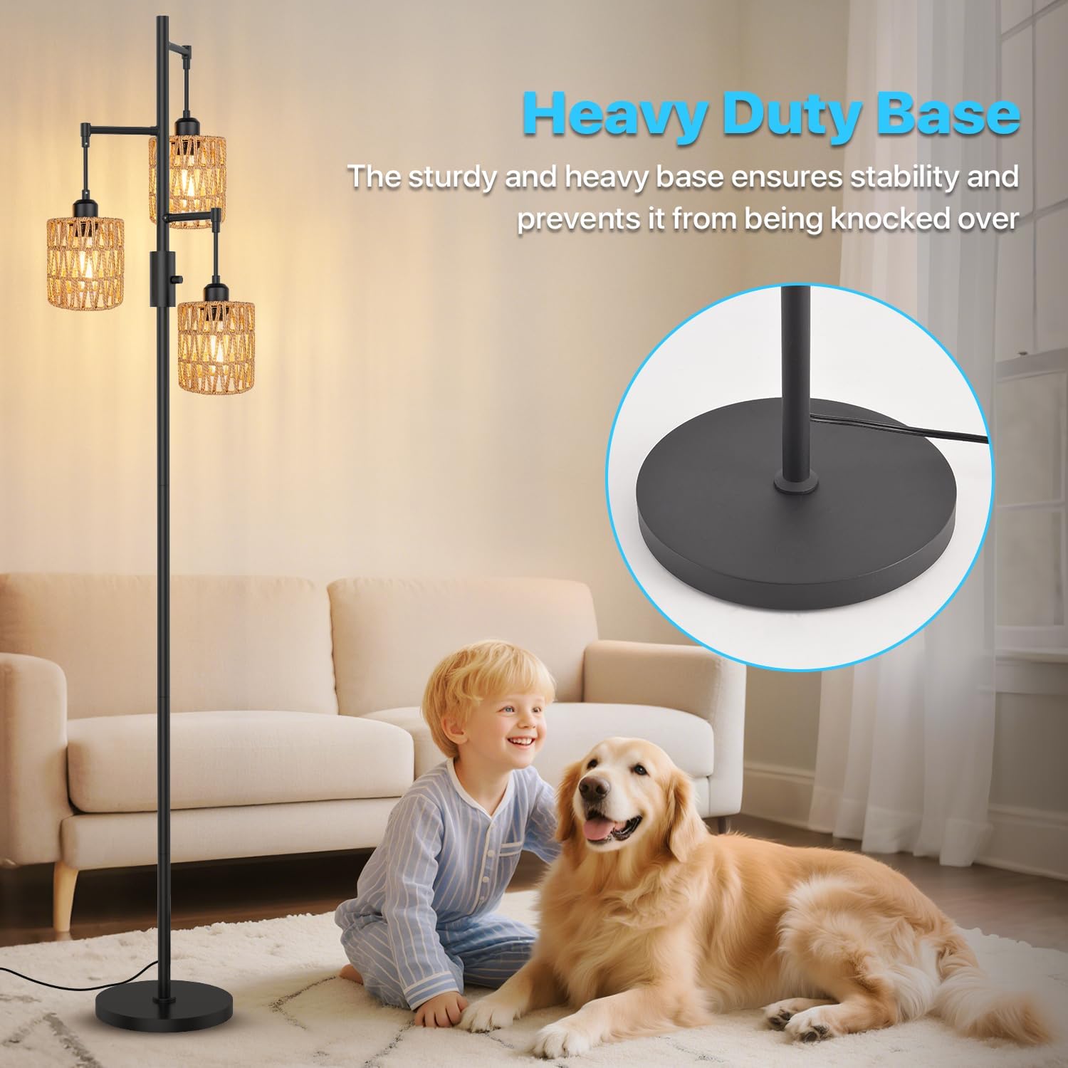 - 【Child & Pet Proof】 Engineered with an extra-wide weighted base to resist bumps and knocks. No more worries about toddlers playing or dogs tail-wagging near your boho wicker lamp