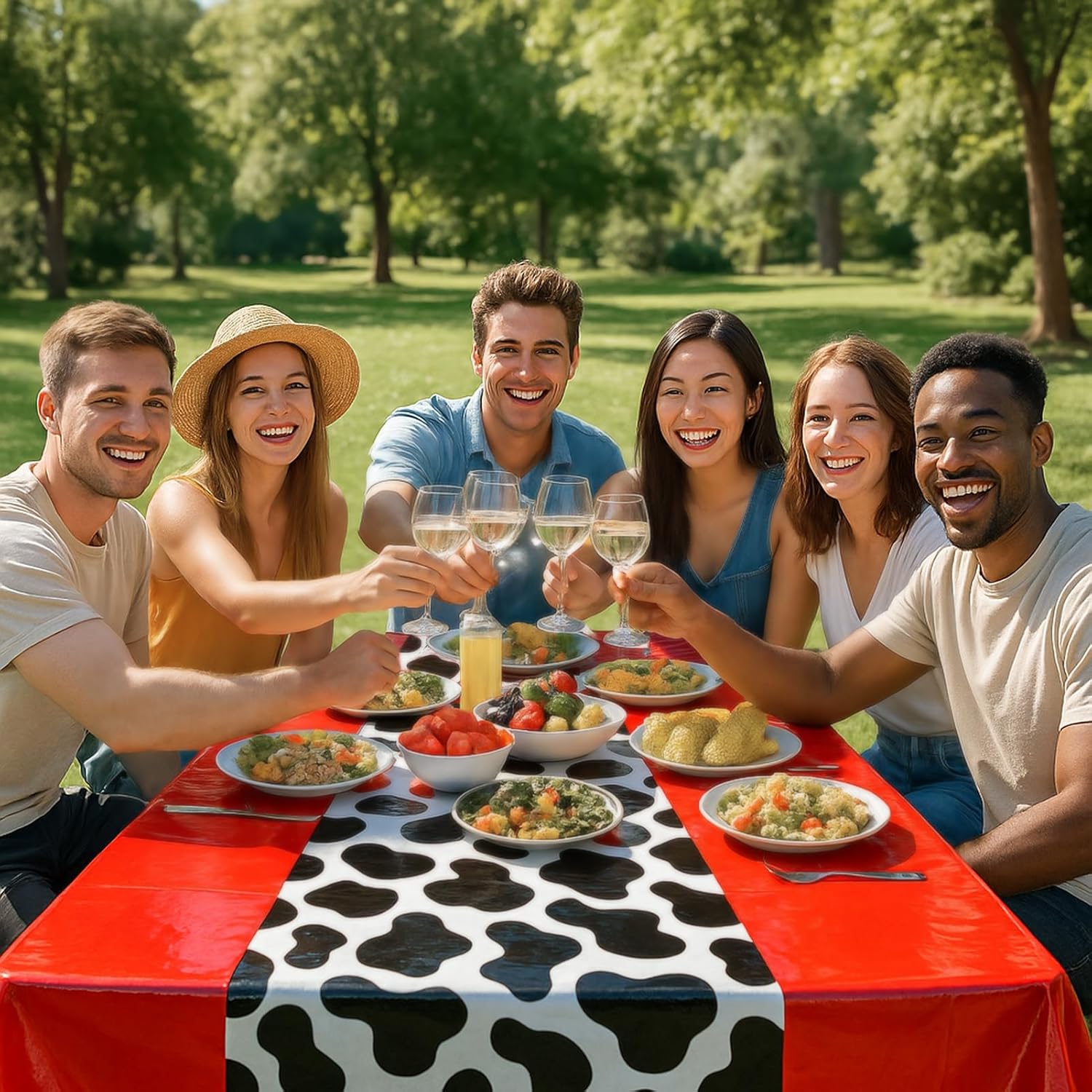 - Premium-Grade Material: Crafted from high-quality plastic, our cow-print tablecloths boast vibrant, fade-resistant colors and durable construction. Lightweight yet tear-resistant, they maintain their cheerful appearance through multiple uses, making them ideal for buffet tables, outdoor picnics, farmhouse dinners, and everyday kitchen use.