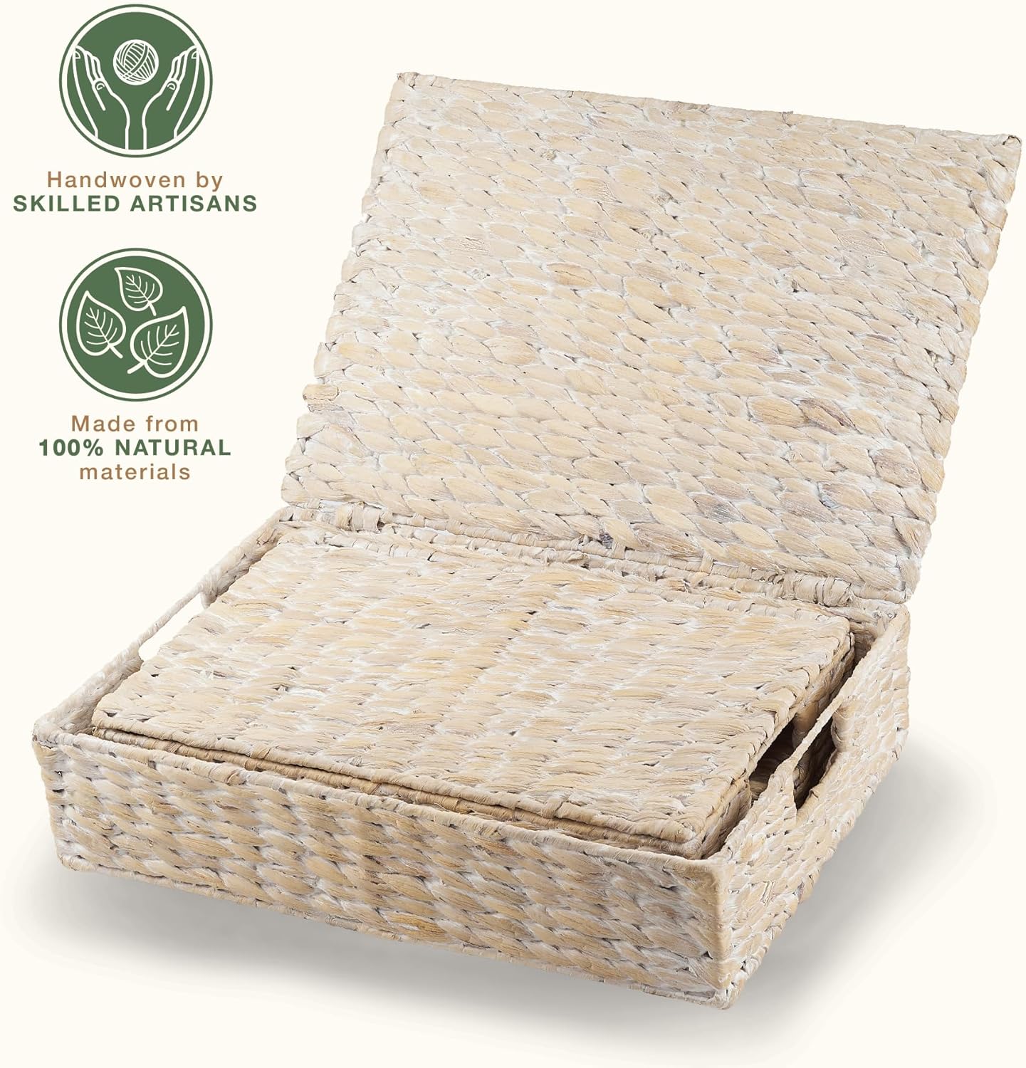 - Versatile Storage Solution: Use these wicker storage baskets with lid to neatly organize mail, office supplies, remote controls, chargers, data cables, makeups, socks, or underwear, keeping your essentials within easy reach but out of sight.