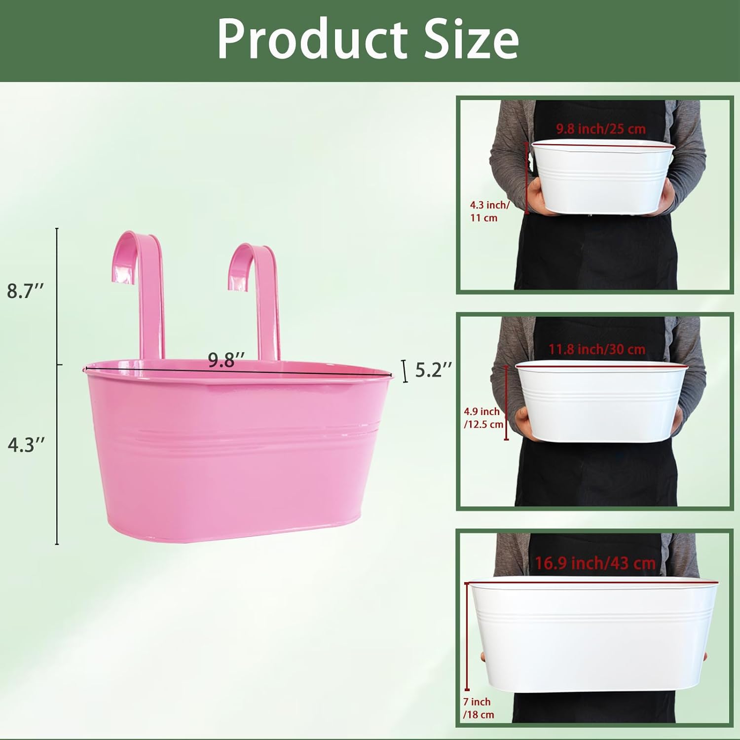 - Detachable Hook & Drainage Hole: The removable hook makes it easy to hang on deck railings, fences, or windows. The drainage hole prevents overwatering, keeping plants healthy. Great for patio planters, herb gardens, or succulents—indoors or outdoors