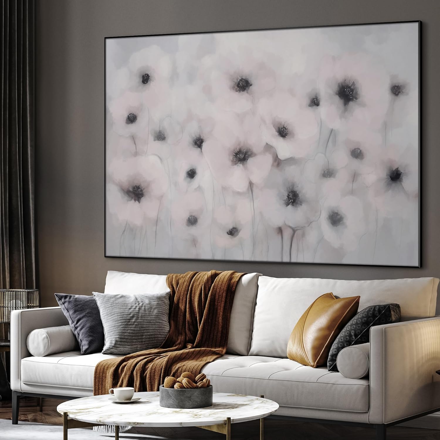 36"x46" Extra Large Framed Wall Art Soft White Poppies Watercolor Floral, Delicate Botanical for Home Living Room Bedroom Decor (Frame Assembly Required)