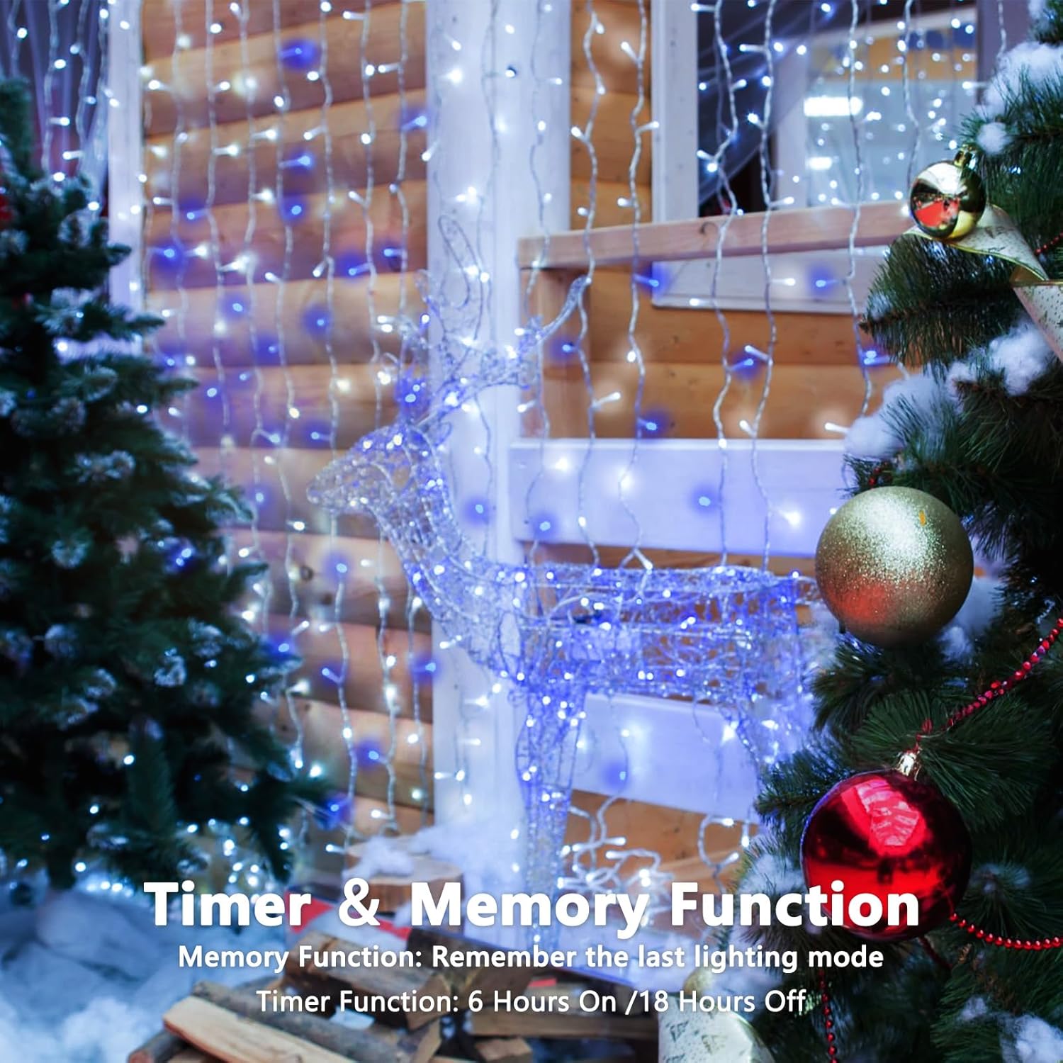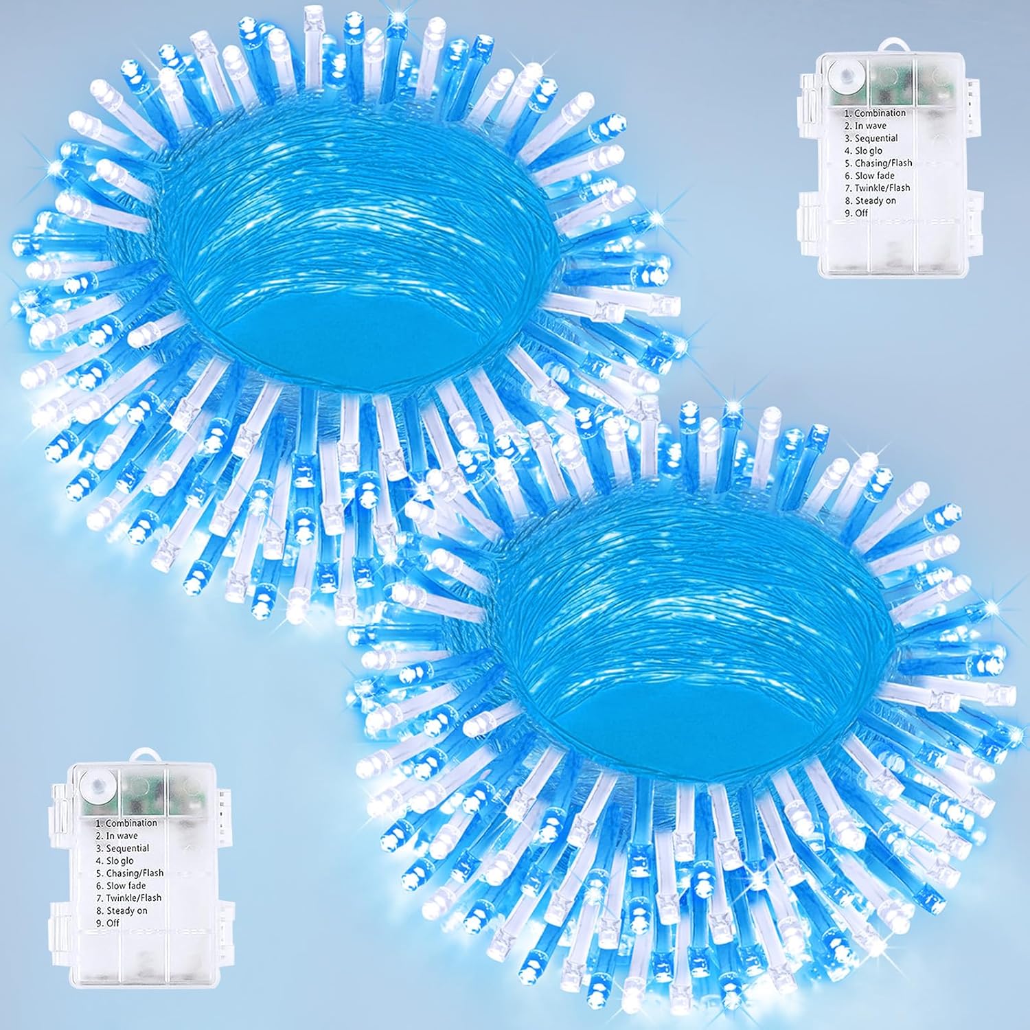 - Ultra-Bright and Durable Battery Powered String Lights: Each string light is 33 feet, features 100 super bright LEDs and a waterproof battery case with 8 lighting modes to ensure longevity and reliability. The blue and cool white Christmas lights emit a classic, romantic and blue and white glow in the dark, making them an ideal choice for indoor and outdoor decorations. These fairy lights are perfect for Christmas, birthdays, parties, weddings, creating a cozy and joyful atmosphere.