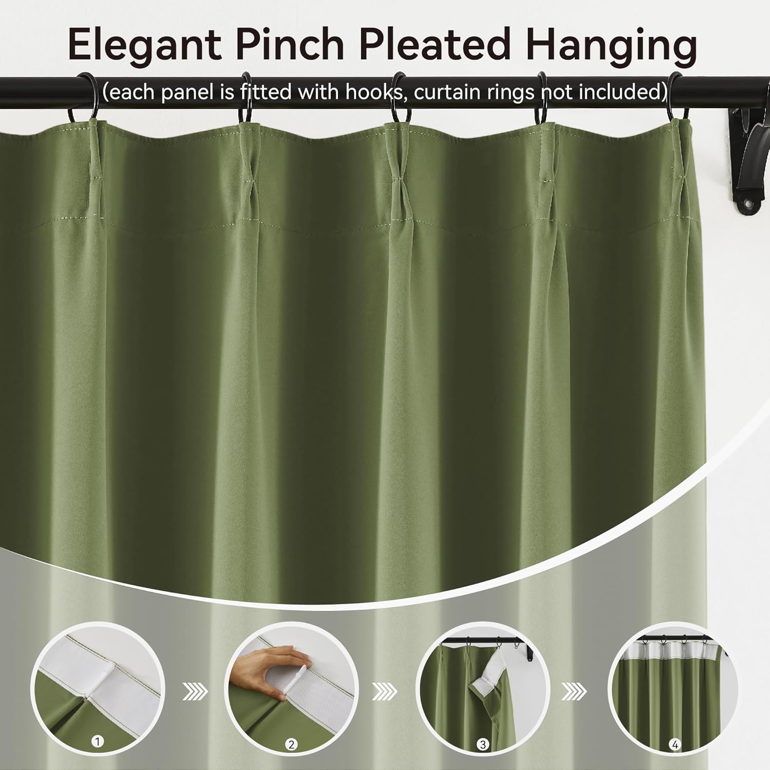 102 Inch Blackout Curtains Pinch Pleated Thermal Insulated Drapes for Bedroom, Room Darkening Solid Window Treatments for Living Room for Traverse Rod With Hooks(2 Panels,40x102 Inch, Sage Green)