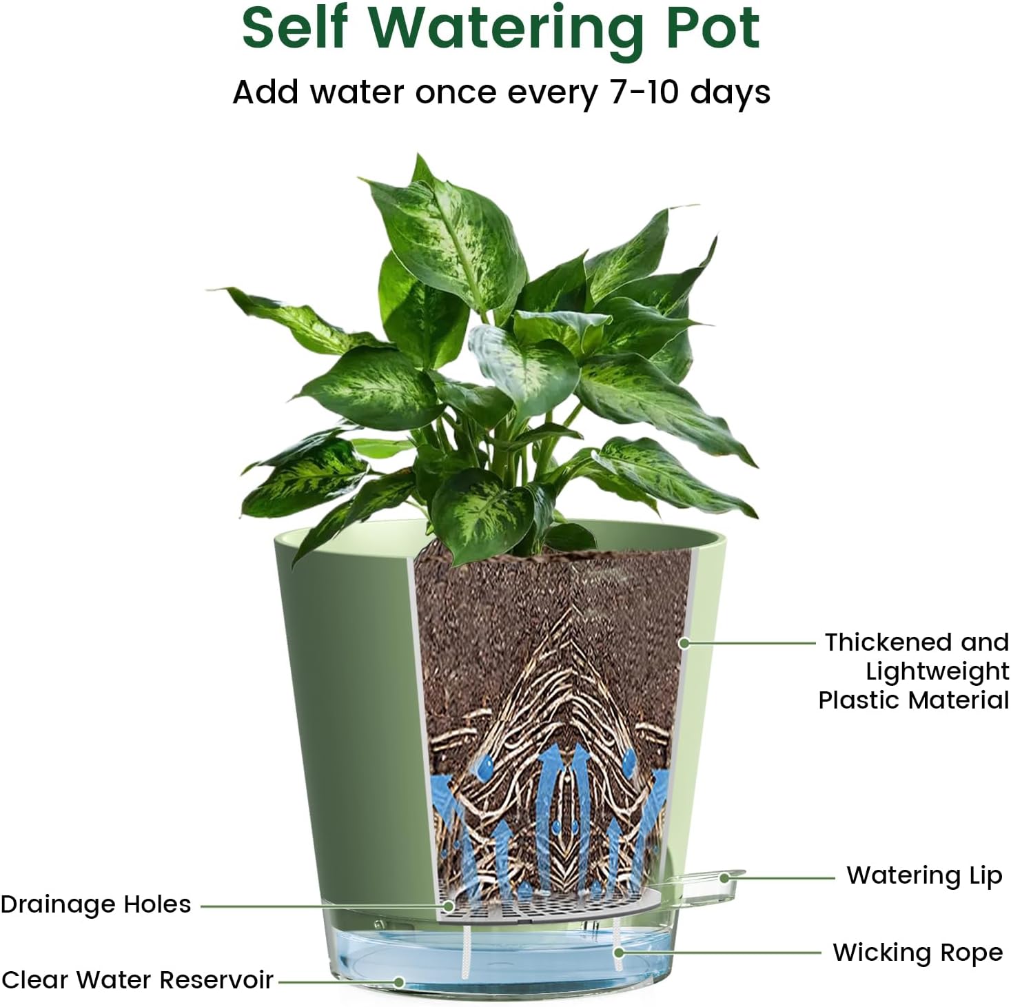 - 【Drainage Holes & Visible Water Level Design】These self watering plant pots with drainage holes. The transparent & detachable saucers lets you monitor water levels - no more guessing between overwatering and underwatering. Maintains moist soil for 7-10 days with even hydration