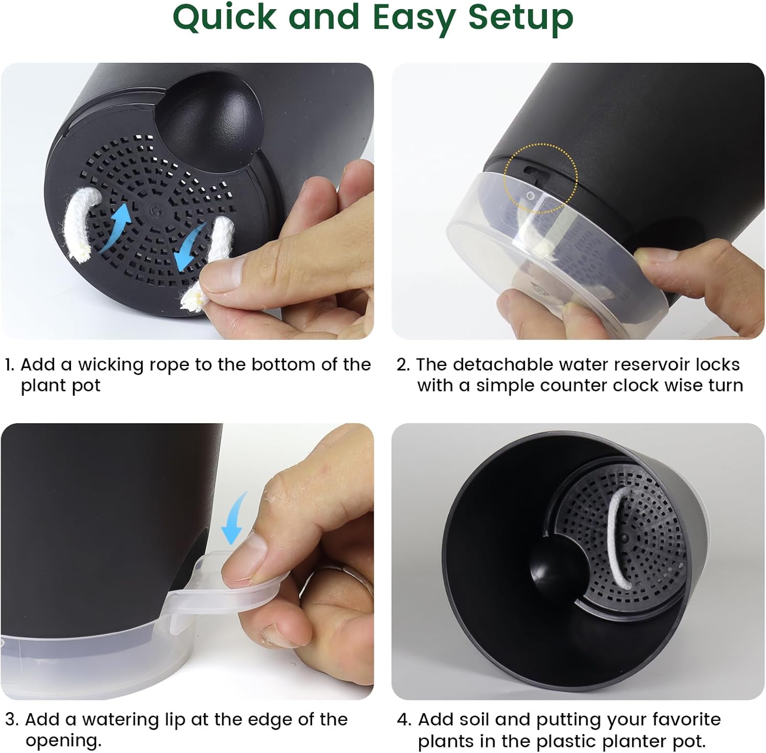 - 【Durability, Lightweight & Sturdy】These flower pots self watering are made of high-quality plastic, thick wall for solid sturdiness while lightweight, resistant to sunlight. Easy to move and rearrange, these self watering pots for indoor plants let you effortlessly create stylish plant displays in your office or home