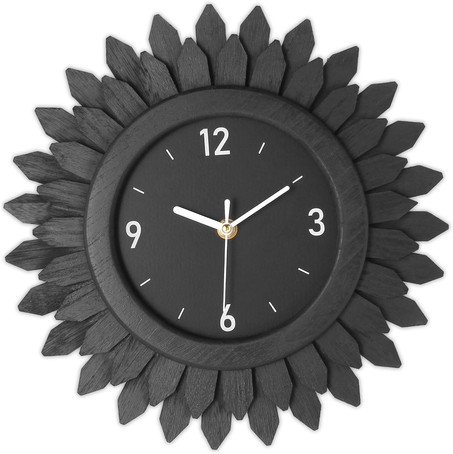 - Boho Wall Decor Clock: Inspired by the sunburst of Bohemian style, this modern wall clock face design is unique and eye-catching, 2 tier wood sunburst looks like the "sun". With a black wooden case, white hour, minute and seconds hands and large white numbers, this decorative wall clock is easy to read from a distance