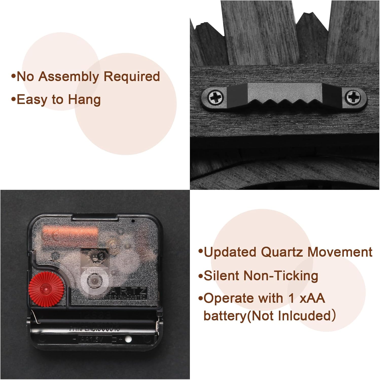 - Silent Wall Clocks: This 12 inch vintage wall clock uses a quartz movement, known for its accuracy and quiet operation, making it perfect for day and night. Honiway Wall Clock new upgrade, no need assembly, only requires 1 AA battery (not included) and comes with a screw and anchor, save your time and effort. Please note: the wall clock does not have a cover