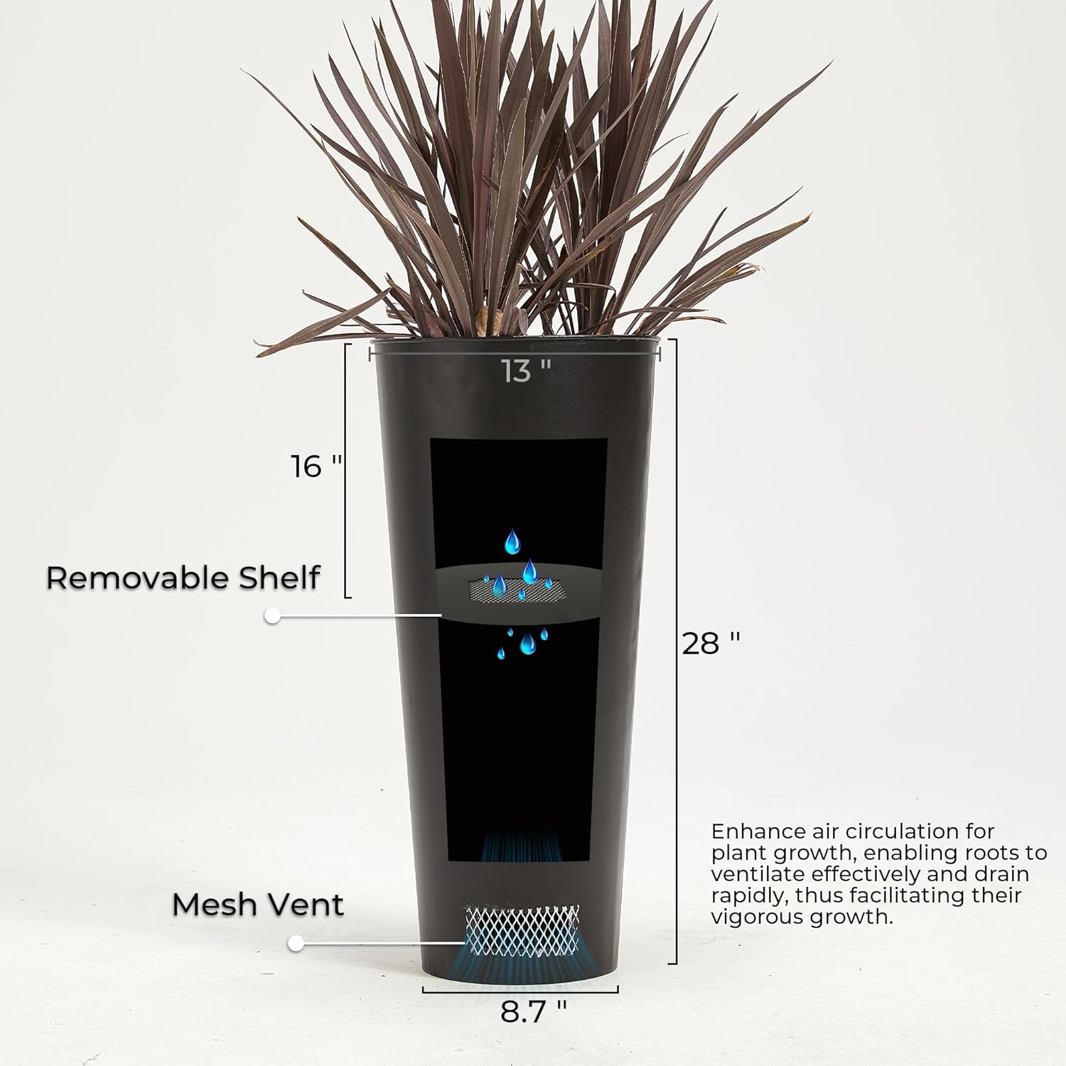 - Smart Drainage & Airflow Design: Mesh vents on both sides + removable shelf with drainage holes keep roots healthy. Ideal for flower pots needing monsoon-proof soil management.