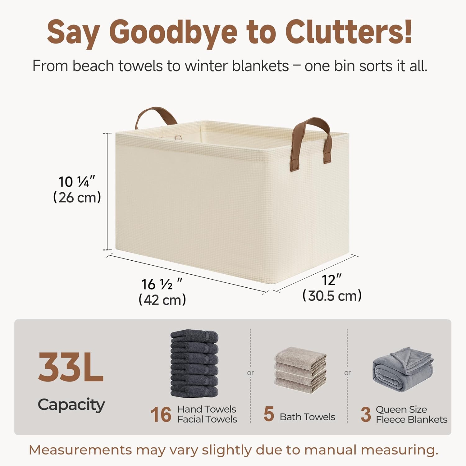- Handle with Ease: With the 2 PU handles securely riveted to the sides of the storage bin, you can easily carry items without tearing the handles.