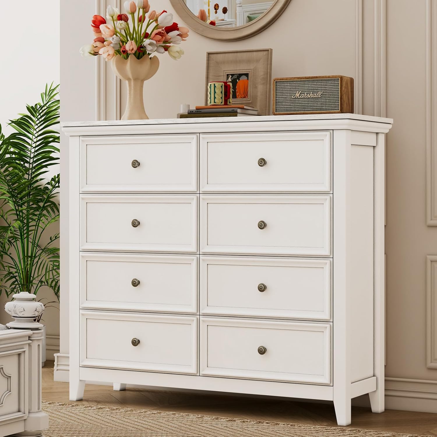 BLANKSPACE White 8 Drawer Dresser, Modern Dresser for Bedroom, Wood Drawer Organizer with Metal Knobs, Large Capacity Cabinet for Bedroom, Hallway