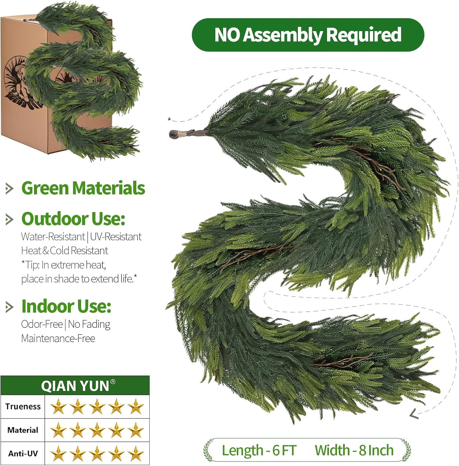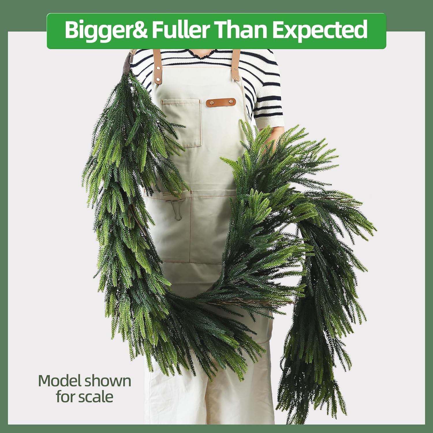 - 【Package & Size】Includes 2 piece of 6FT artificial Norfolk pine greenery garland, featuring extra-dense and full pine needles for a lush, high-end look. Compact yet eye-catching, perfect for enhancing any indoor or outdoor setting.