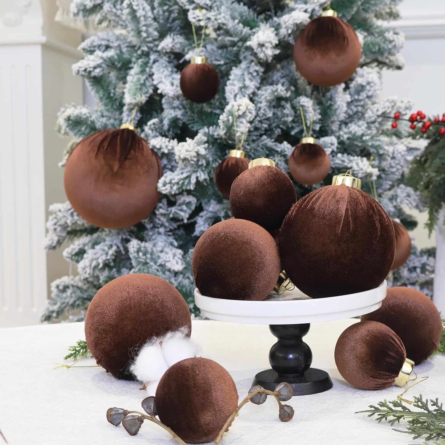 6inch Big Brown Velvet Christmas Ornaments, 2pcs Flocked Ornaments Balls Sets for Christmas Tree Decorations