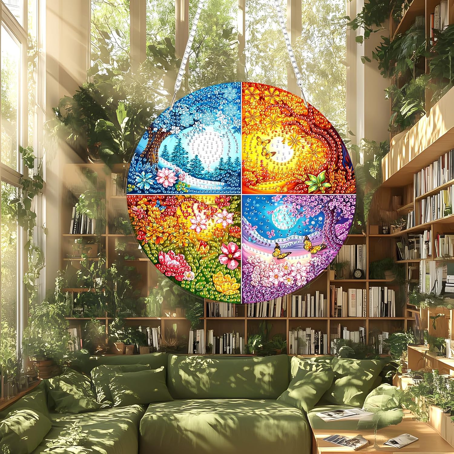 - Versatile Window and Wall Hanging Decoration: This diamond art hanging ornament is perfect for decorating windows, walls, doors, or even your garden. Add a charming touch to your home with this sparkling suncatcher style pendant