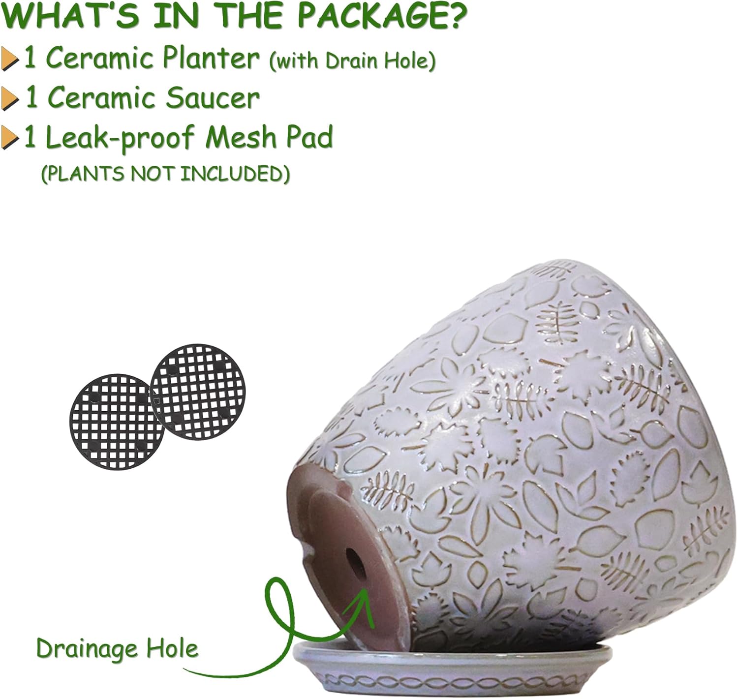 - Thoughtful Gift for Plant Enthusiasts:The Ceramic Plant pots with Drainage Hole and Saucer for plants indoor Designed with charming leaf , flower, and plant motifs, these planters make excellent gifts for plant lovers. Suitable for occasions such as birthdays, anniversaries, housewarmings, Thanksgiving, Christmas, and more.