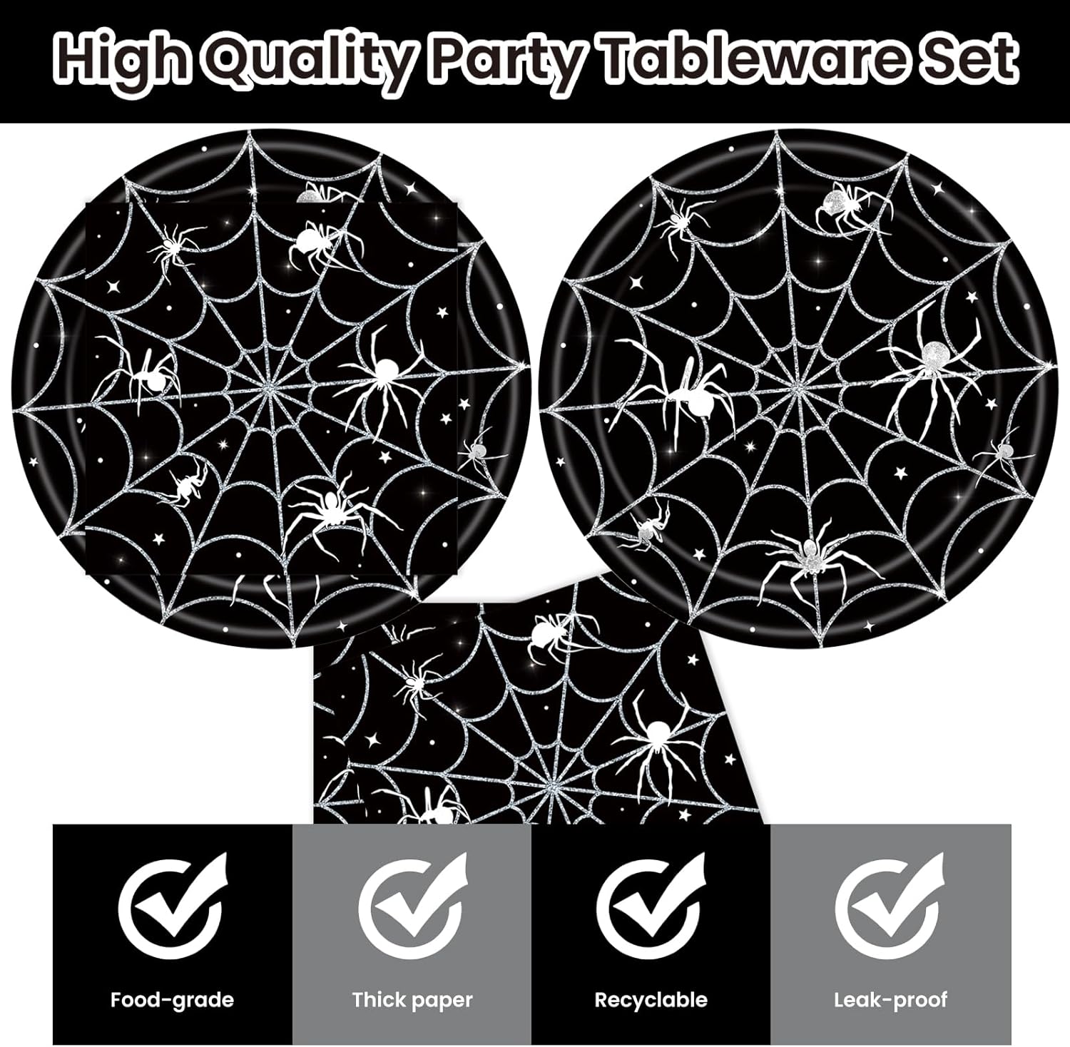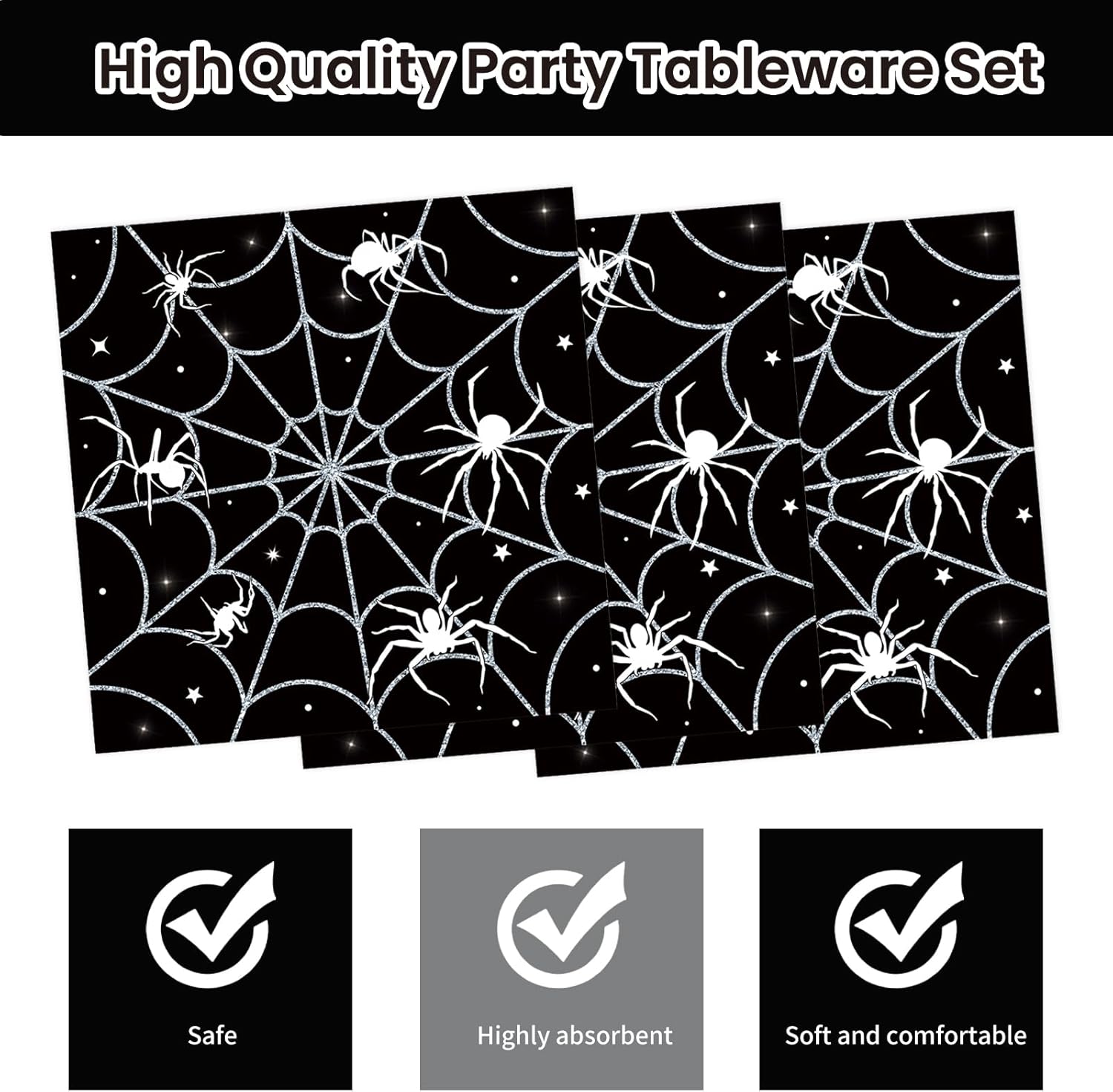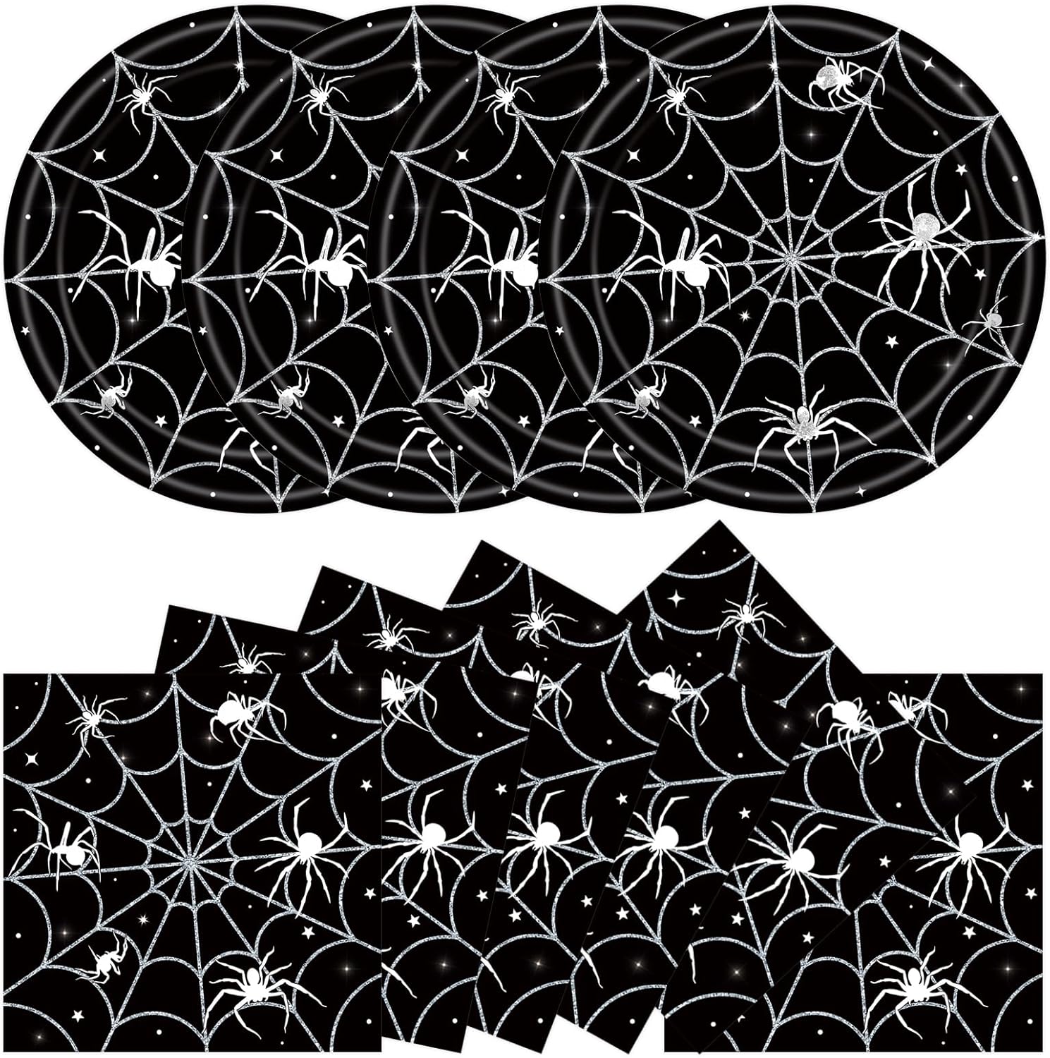 40Pcs Halloween Paper Plates and Napkins Party Supplies, Spider Web Plates Napkins Disposable Dinnerware Set for Spooky Halloween Party Decorations