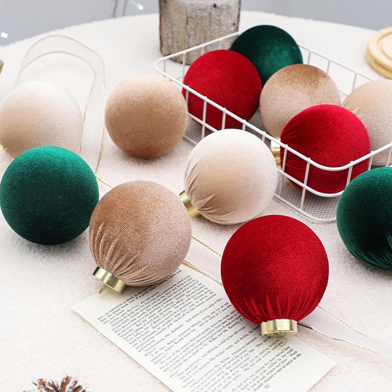 - ☀️CHRISTMAS ORNAMENT SET: The Christmas ornament set features 12 large velvet Christmas ornament balls, made of high-quality materials and with exquisite surface treatment. It has a classic and elegant design, making it perfect for decorating Christmas trees of various sizes and creating a warm and unique Christmas atmosphere for your home.