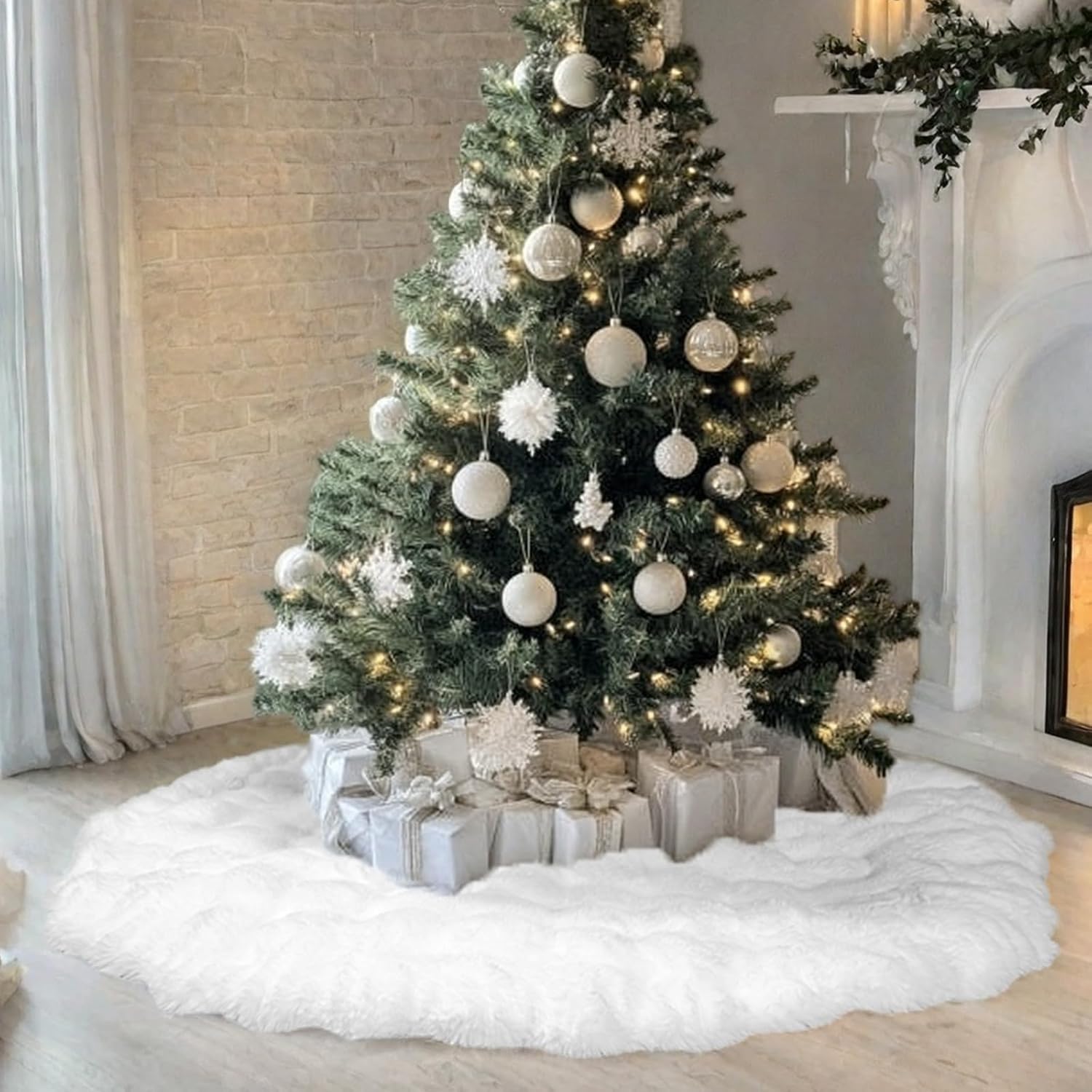 - 🎄35 inches and 48 inches, snow white, warm and soft, it is the perfect Christmas tree skirt to dress up the Christmas tree and a favorite for winter pets!