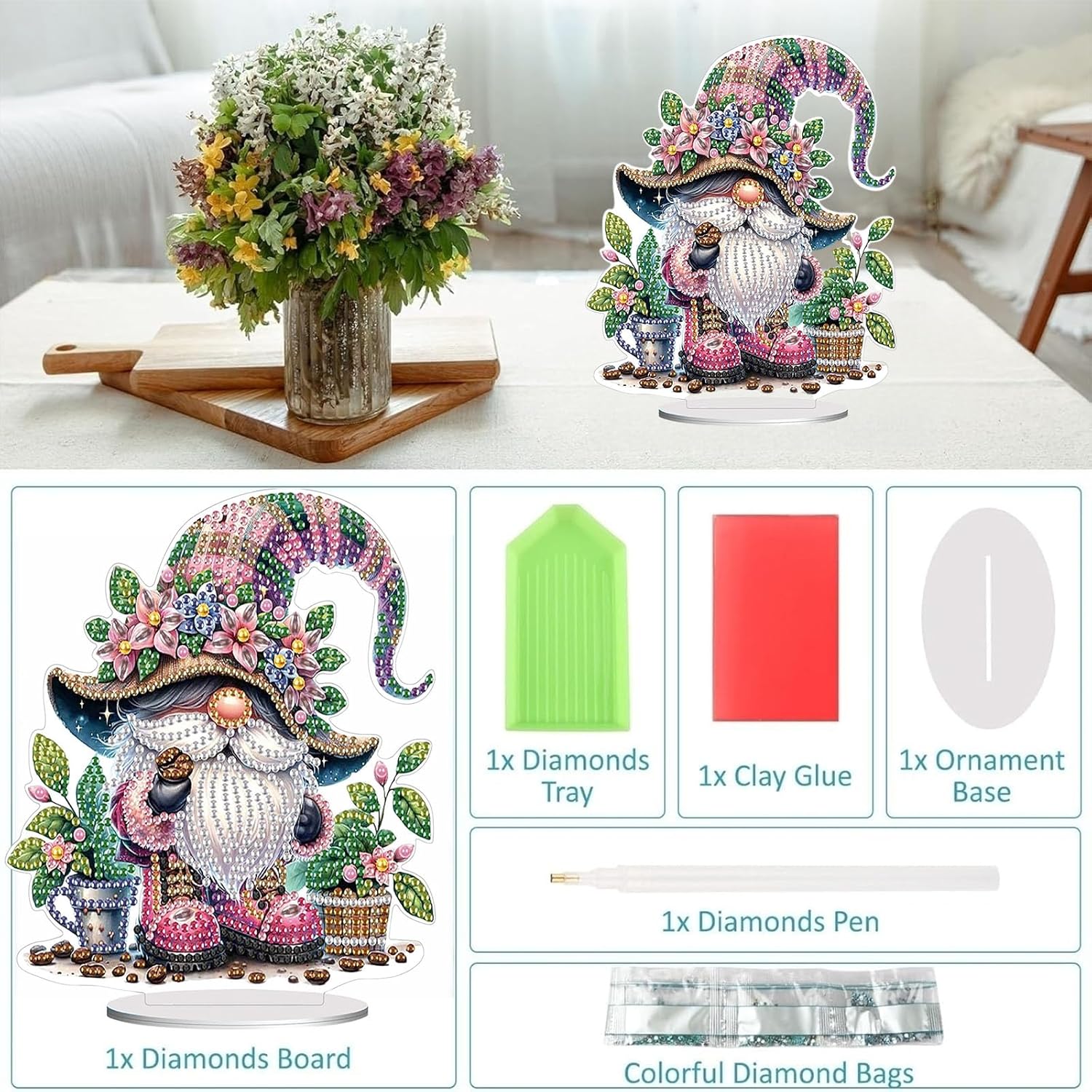 Diamond Painting Kits for Adults Beginners, 5D Full Drill Dwarf Crystal Art Desktop Ornament, DIY Single Sided Home Office Desk Decor, Creative Craft Gift Set with Tools