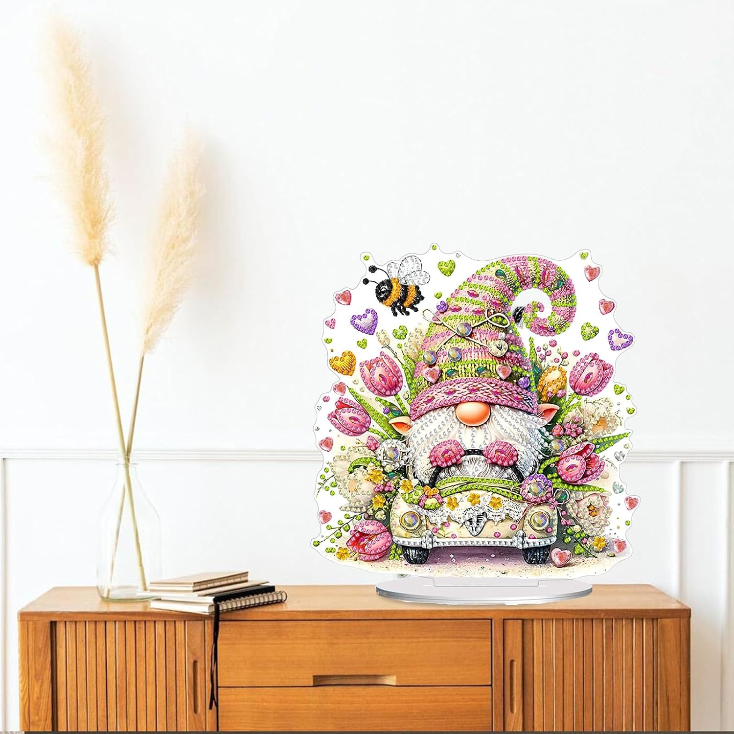 - 【Home Decor】:Diamond Art Painting ornament with base design, you can place it in your living room, fireplace, cabinet, shelf and other places you like. The combination of single-sided sparkling diamonds and the beauty of shaped diamonds enhances the visual appeal and uniqueness of the artwork, and the inlaid rhinestones refract the shimmering luster under the light.