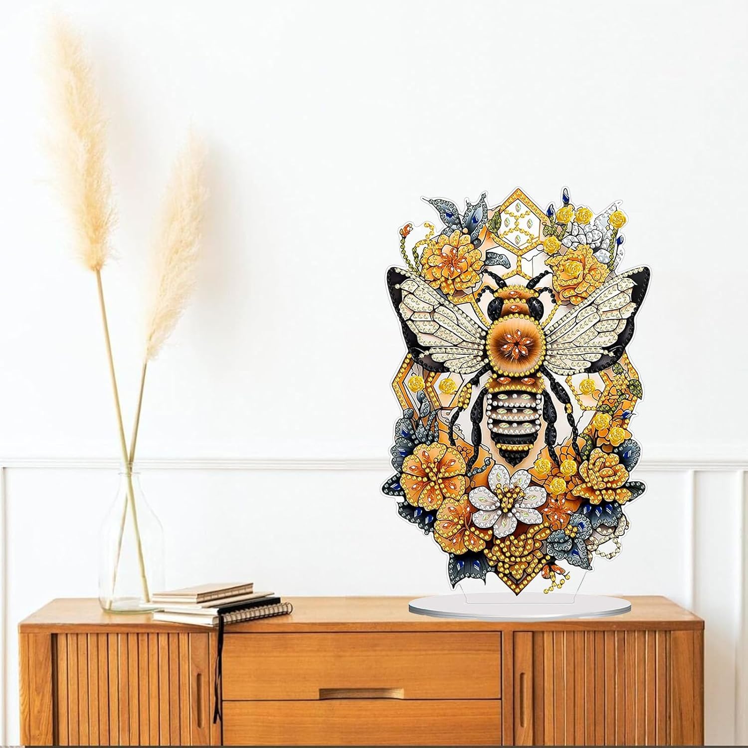 Diamond Painting Kits for Adults Beginners, 5D Full Drill Bee Crystal Art Desktop Ornament, DIY Single Sided Home Office Desk Decor, Creative Craft Gift Set with Tools