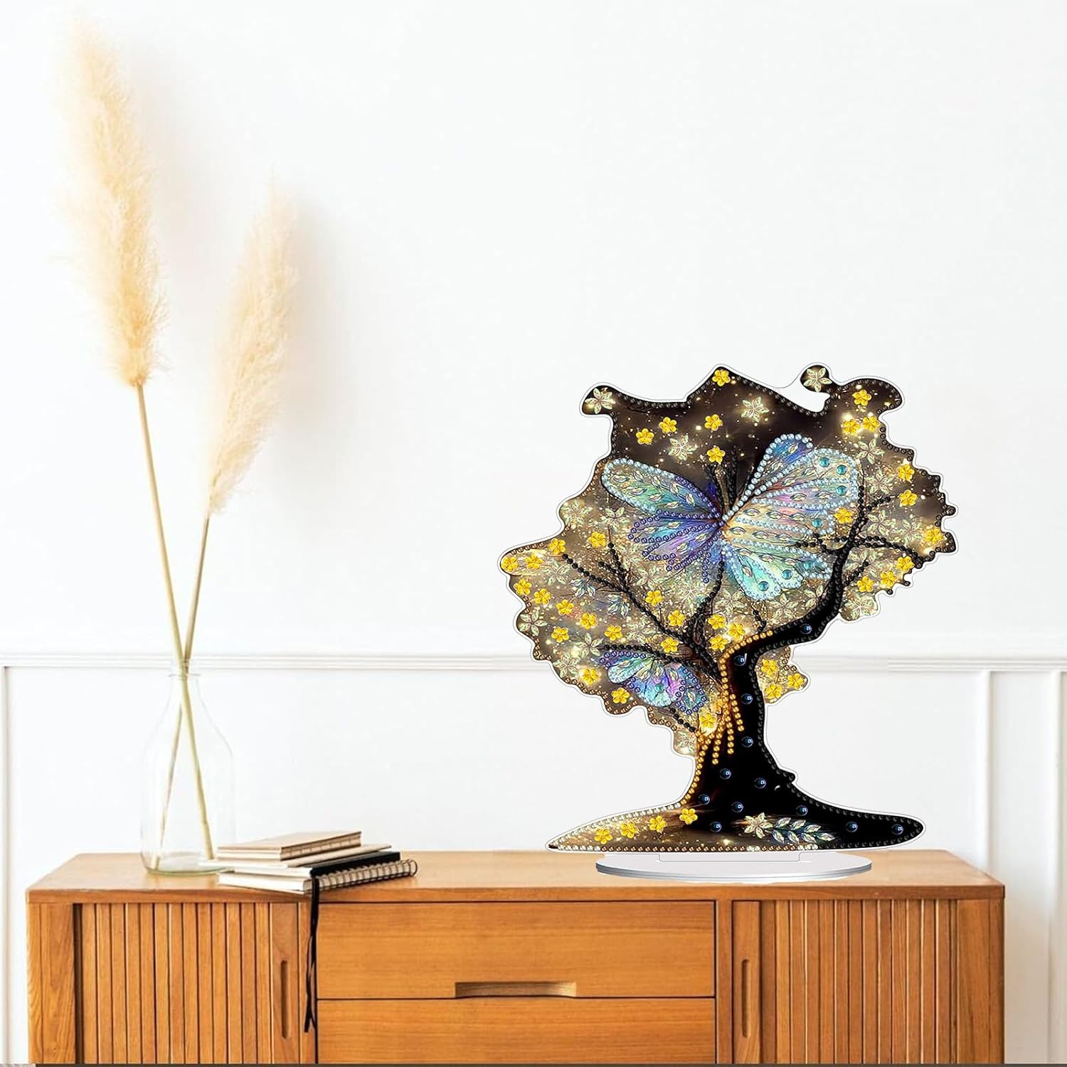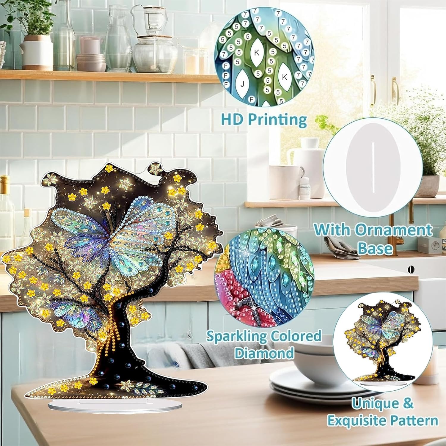 - 【Home Decor】:Diamond Art Painting ornament with base design, you can place it in your living room, fireplace, cabinet, shelf and other places you like. The combination of single-sided sparkling diamonds and the beauty of shaped diamonds enhances the visual appeal and uniqueness of the artwork, and the inlaid rhinestones refract the shimmering luster under the light.