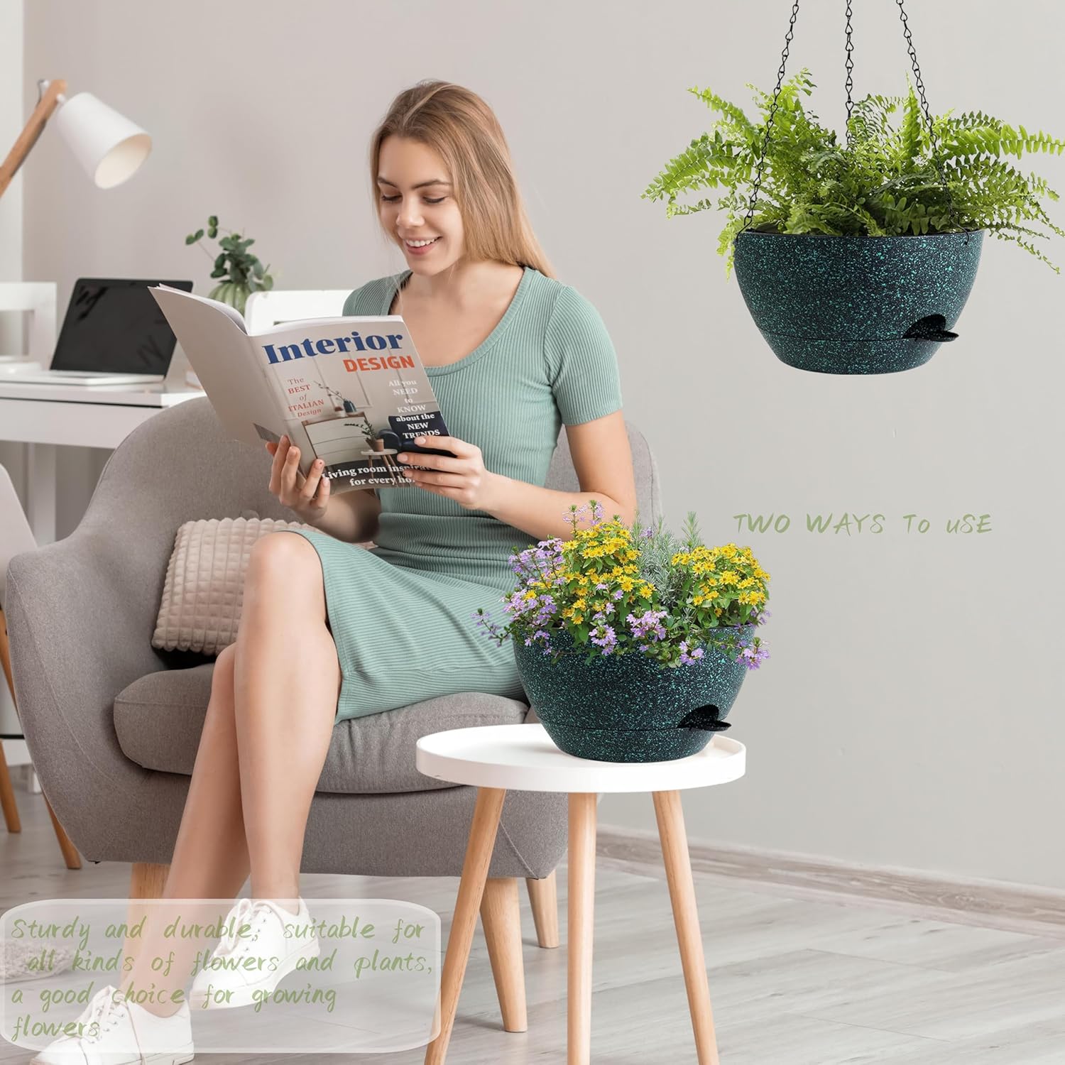 - 【Minimalist Modern Design】Trendy Colors and a Modern look allow this decorative Pot to fit into any Indoor and Outdoor setting. these 12" Hanging Pots offer generous space for your greenery. Good for creating eye-catching botanical arrangements