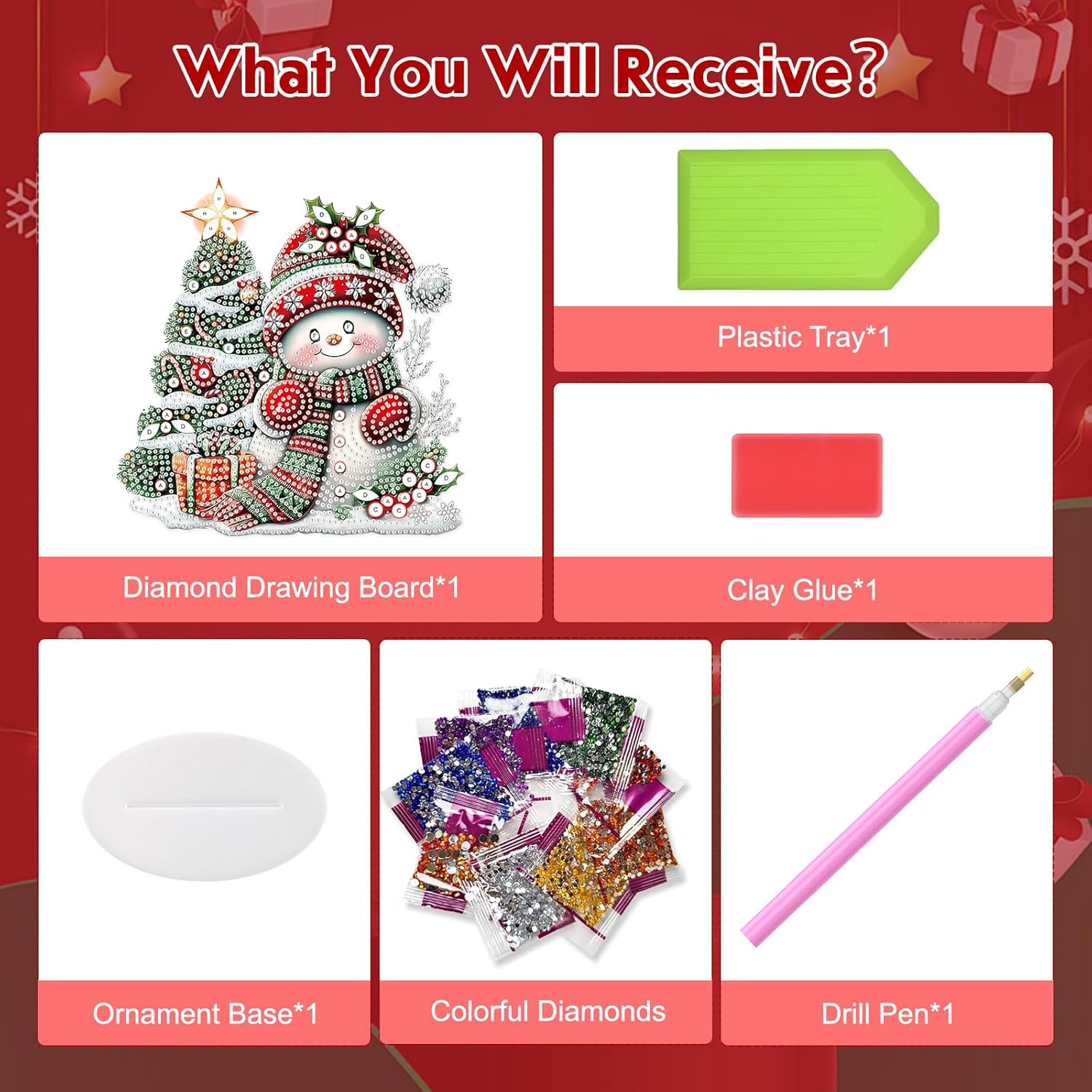 MEIYUDA Christmas Diamond Art Tabletop Kits, Christmas Tree and Snowman Diamond Art Painting Desktop Ornaments for Adult, DIY Special Shaped Crystal Desk Placement Ornament for Home Decor