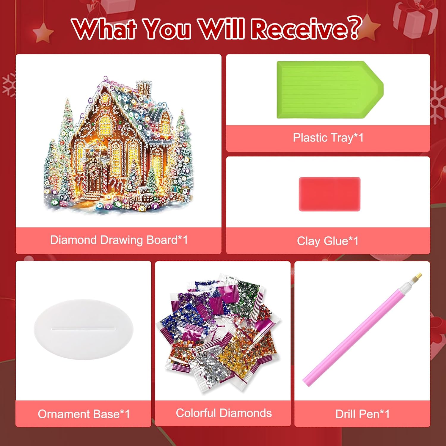 MEIYUDA Christmas Diamond Art Tabletop Kits, Christmas House Diamond Art Painting Desktop Ornaments for Adult, DIY Special Shaped Crystal Desk Placement Ornament for Home Office Decor Crafts Gift