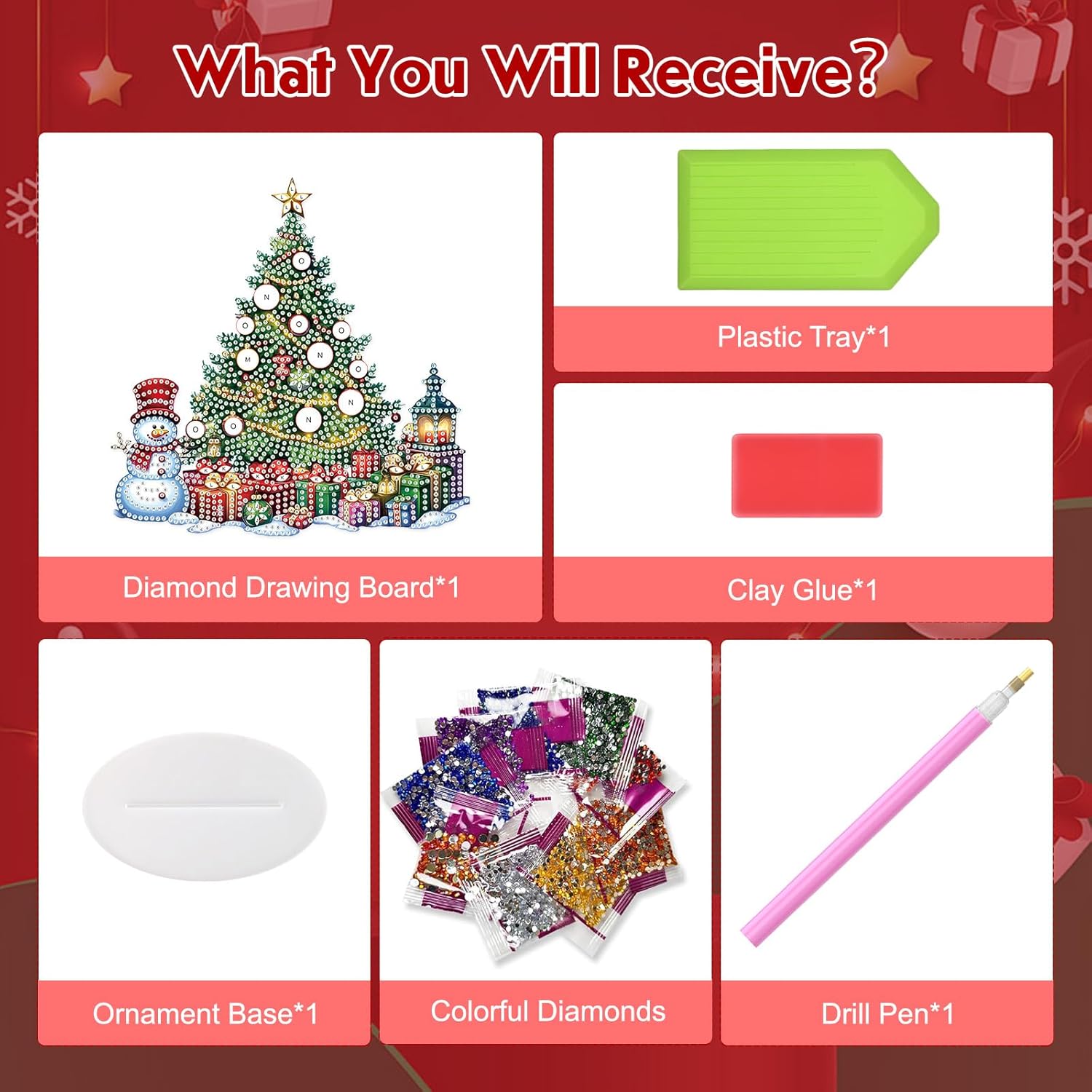 - DIAMOND ART PENDANT KITS: You will receive DIY desktop diamond ornament board *1, ornament base *1, dotting pen *1, glue *1, diamond tray *1 and enough colorful sparkling crystal diamonds, just a few simple steps and a little bit of time to get started easily, anyone can make exquisite desktop ornaments