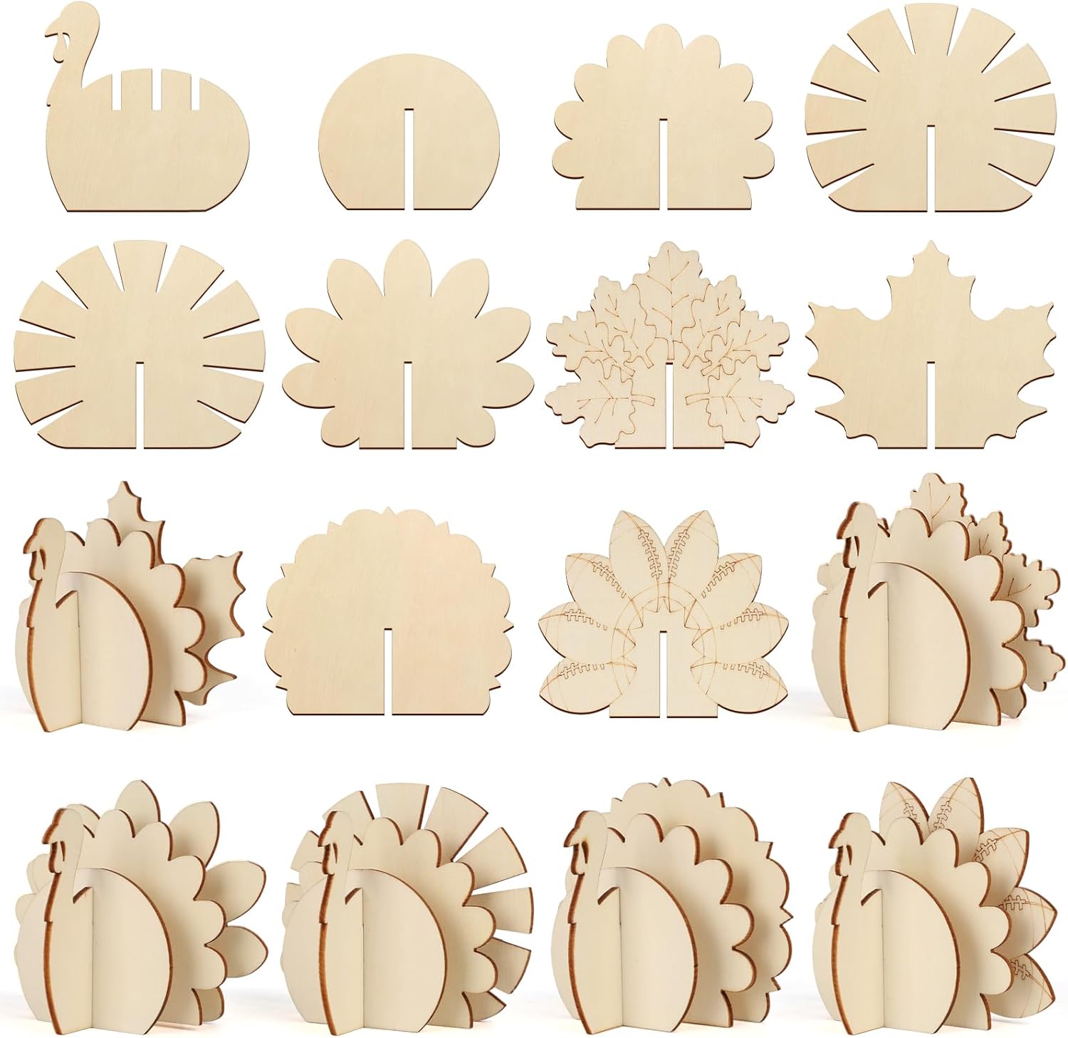 - Unique 3D Turkeys Shape Wood Crafts To Paint - These unfinished wood sheets are cut out to cute Thanksgiving turkey patterns, in sufficient quantity, and a suitable size for you to use on DIY craft projects. You can also share them with your kids and friends.